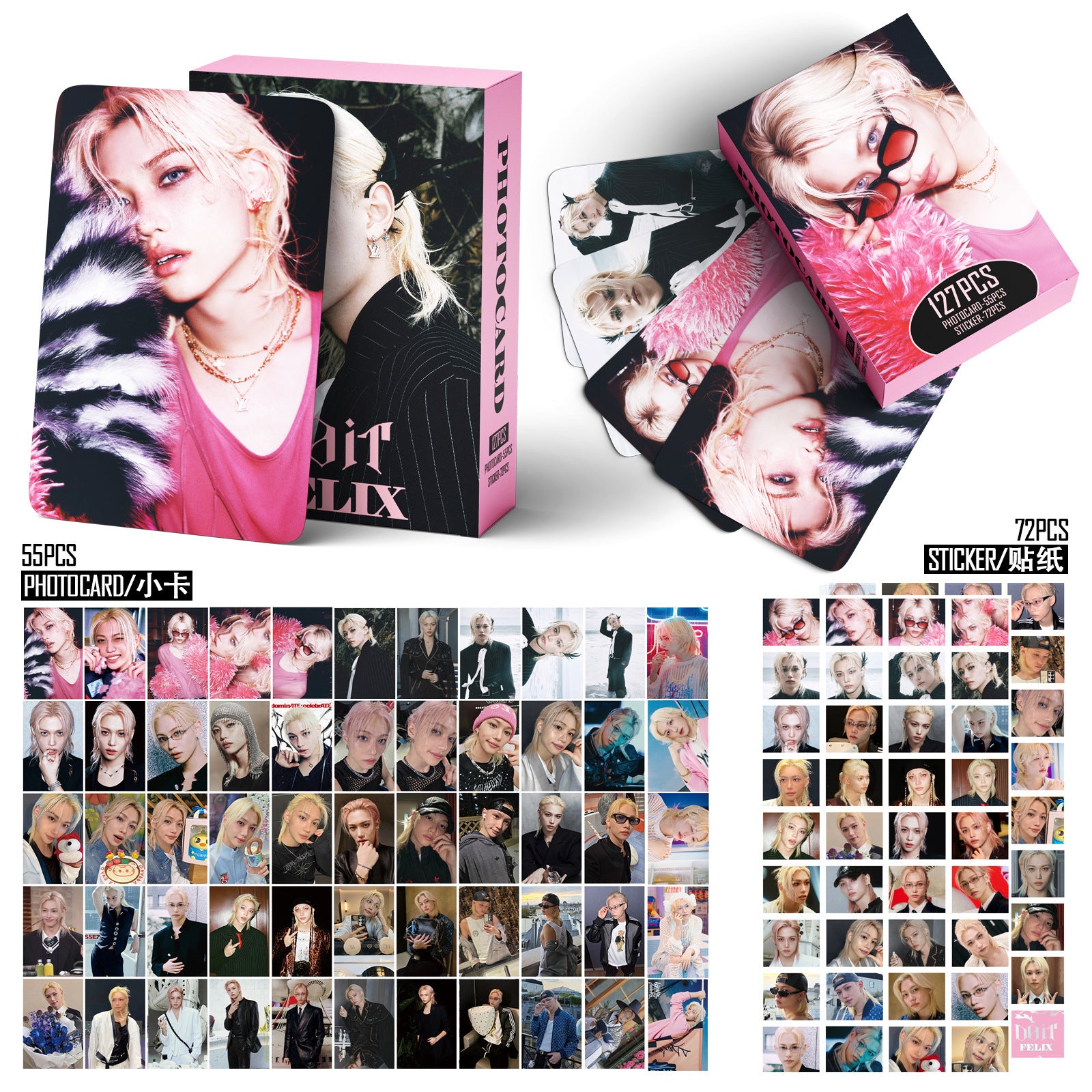 • Elevate your photocard collection with this comprehensive 127-piece sticker set featuring DO IT FELIX designs. Each sticker captures charming, expressive artwork perfect for personalizing your favorite cards, albums, and memorabilia. The vibrant colors and detailed illustrations bring personality to every application, whether you're decorating scrapbooks, gift boxes, or creating custom displays. Ideal for collectors and fans seeking to enhance their aesthetic arrangements with quality, adorable embellishments that celebrate your passion.