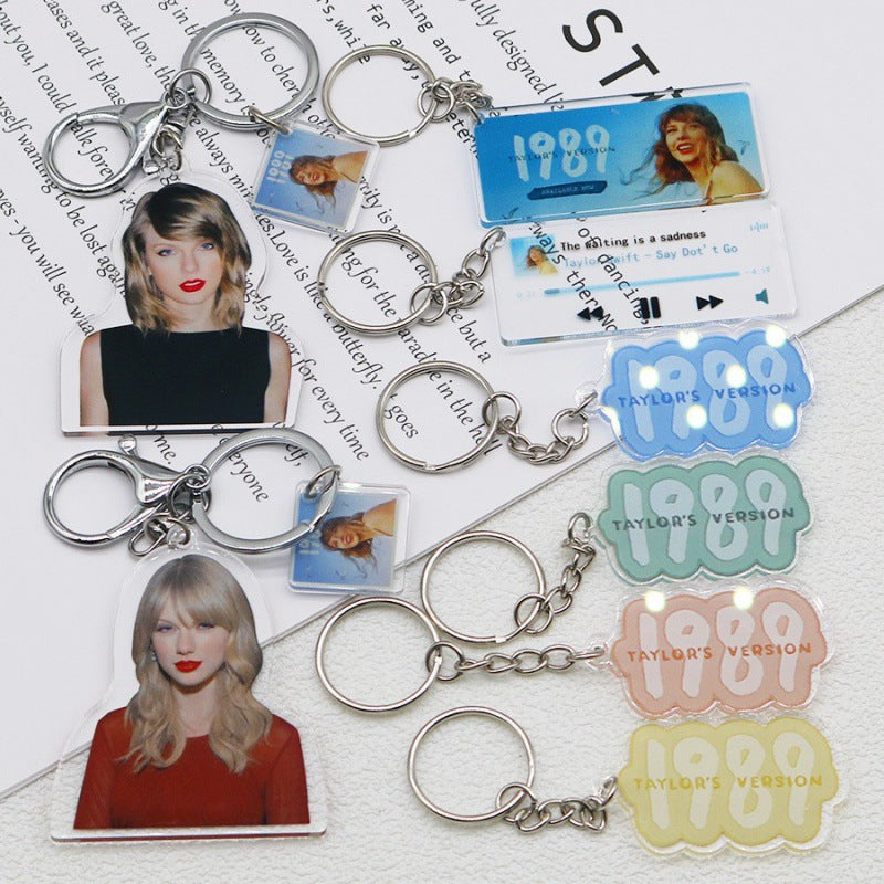 • 1989 by Taylor Swift comes to life with this adorable acrylic keychain and CD coaster. Eye-catching and cute, this product is perfect for any die-hard Swiftie looking to display their love for this iconic album. Keep your keys close and your drinks stable with this fun and functional accessory.
