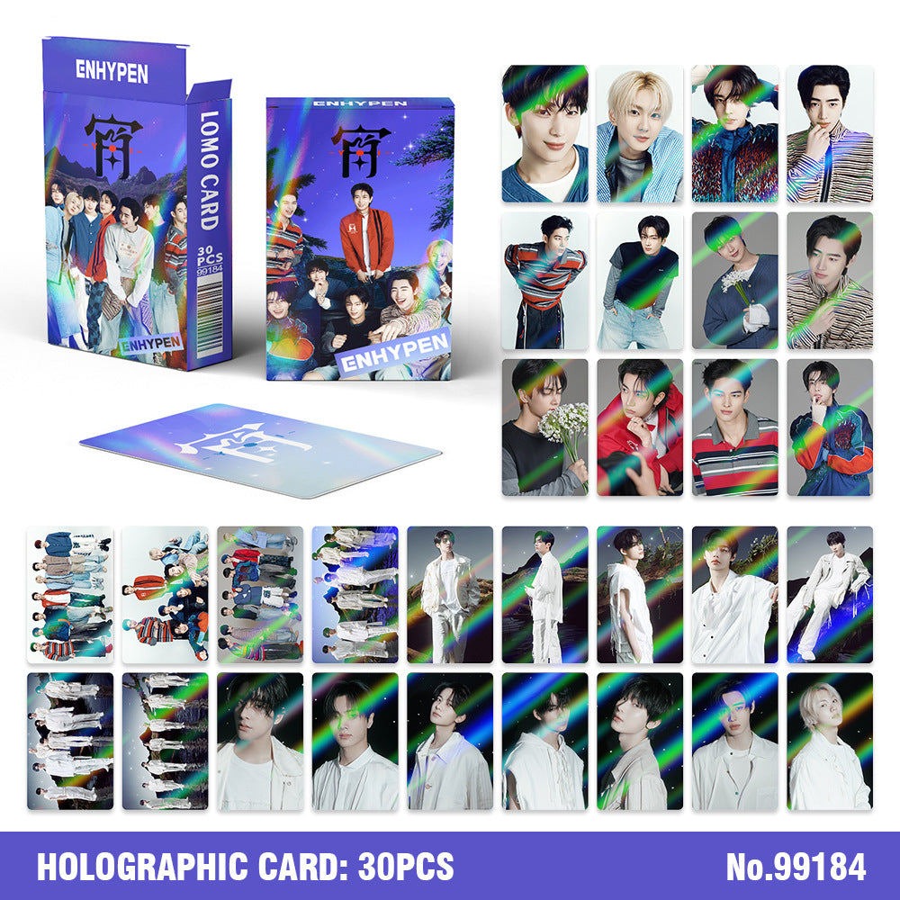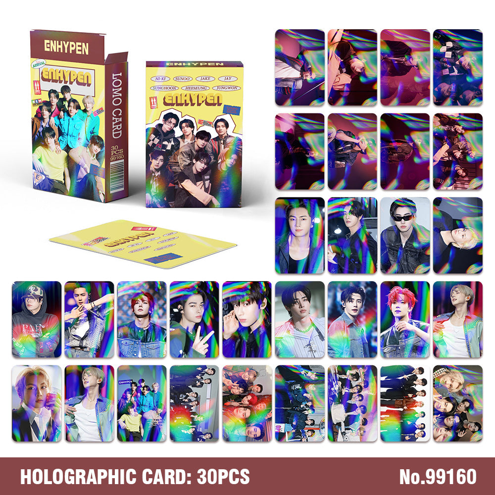 • Elevate your collection with this premium set of 30 holographic photocards featuring festive Season's Greetings designs. Each card showcases stunning holographic finishes that catch the light beautifully, creating dynamic visual effects from every angle. Perfect for collectors, fans, and gift-givers alike, these cards combine seasonal charm with modern aesthetic appeal. The holographic treatment adds depth and dimension, making each card a standout piece. Ideal for displaying, trading, or gifting during the holiday season and beyond.