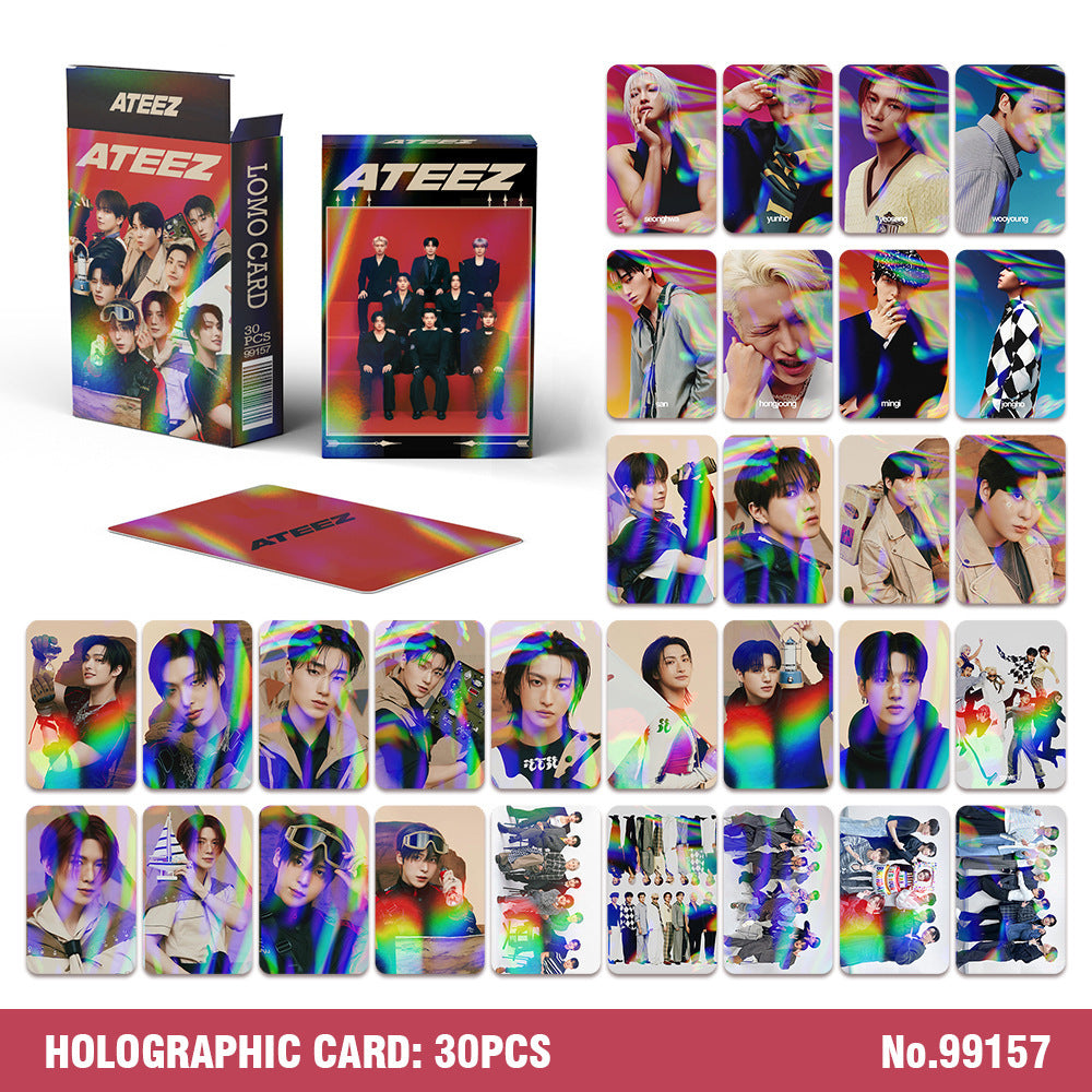 • Elevate your K-pop collection with this premium set of 30 laser LOMO cards, featuring striking holographic effects and vibrant imagery. Each card showcases meticulous print quality with sharp details and eye-catching metallic finishes that capture light beautifully. Perfect for collectors and fans seeking to display or trade authentic merchandise, these cards combine aesthetic appeal with durability. The laser technology creates a distinctive dimensional quality that standard cards cannot match, making each piece a standout addition to any K-pop memorabilia collection. Ideal for album enthusiasts who appreciate quality craftsmanship and visual impact.
