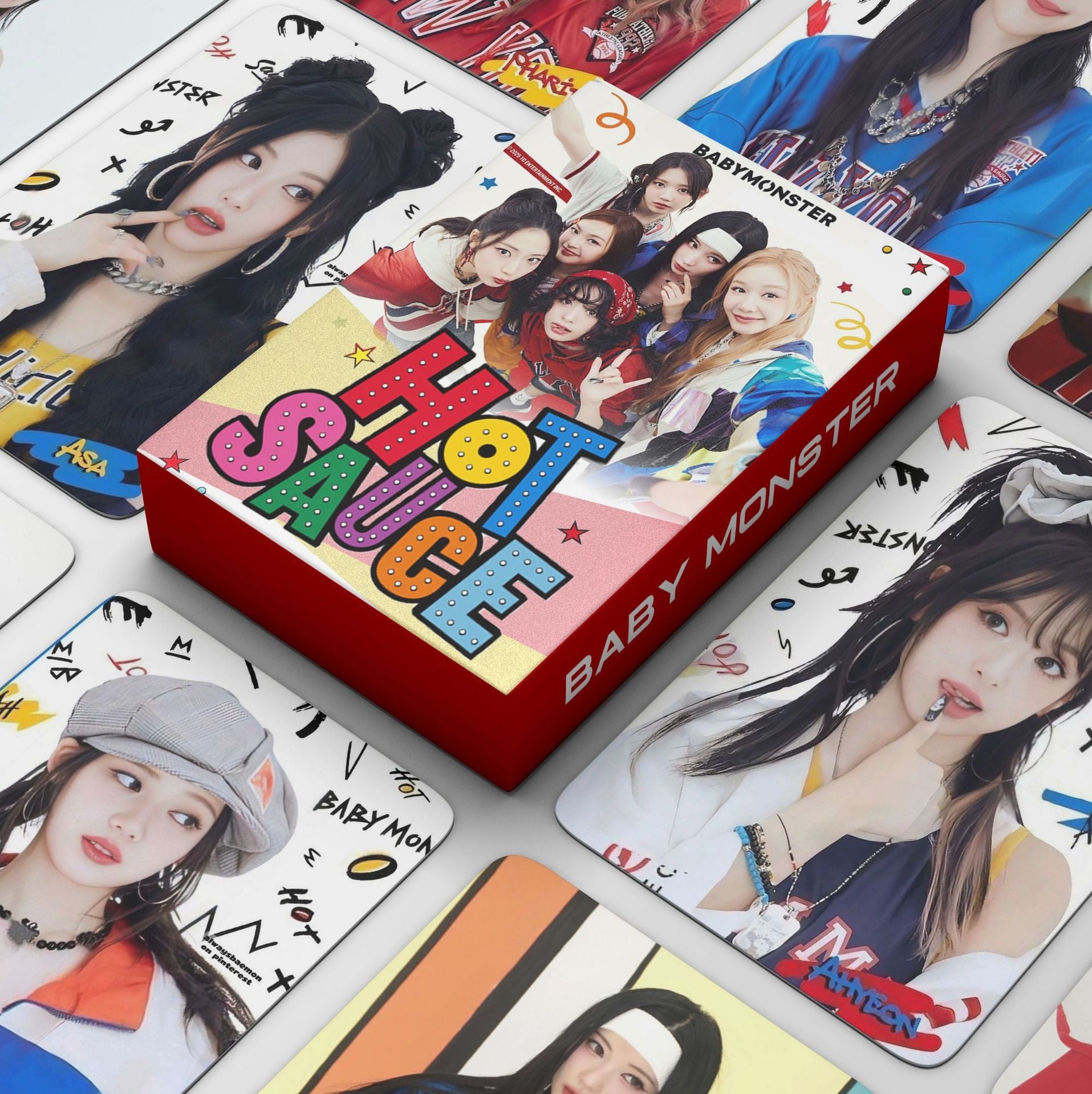 • Discover the 55 BABYMONSTER Hot Sauce LOMO Cards—a must-have collection for fans and collectors. Each card features vibrant, high-quality imagery capturing unique moments and artistic expressions of BABYMONSTER. Compact and durable, these cards are perfect for display or sharing, offering an expert-level way to celebrate your favorite group with style and flair.