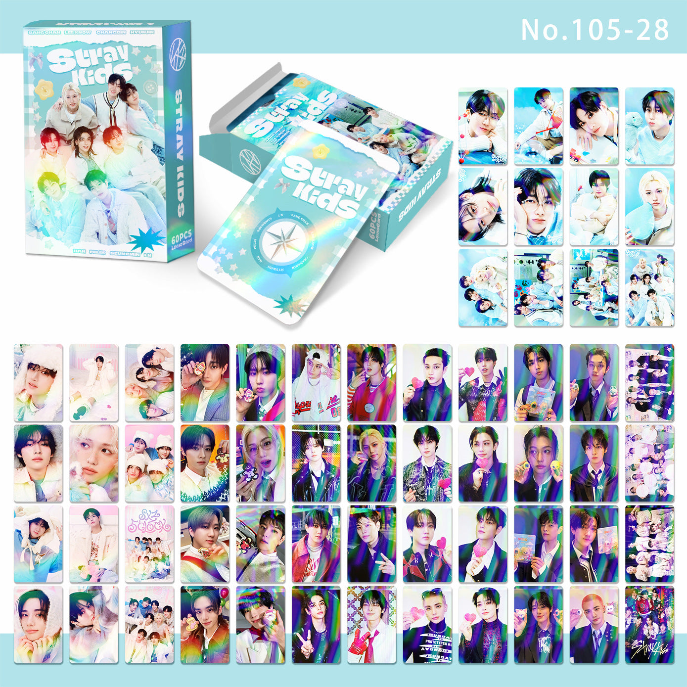 • 60pcs Laser SKZ LOMO PhotoCard Elevate your collection with this premium set of 60 laser-printed SKZ LOMO photocards. Each card features vibrant, high-definition imagery with a distinctive holographic finish that catches light beautifully. The compact LOMO format makes them perfect for displaying, trading, or gifting to fellow fans. Durable cardstock construction ensures longevity, while the laser printing technique delivers crisp details and rich color saturation. An essential addition for collectors seeking quality and aesthetic appeal.