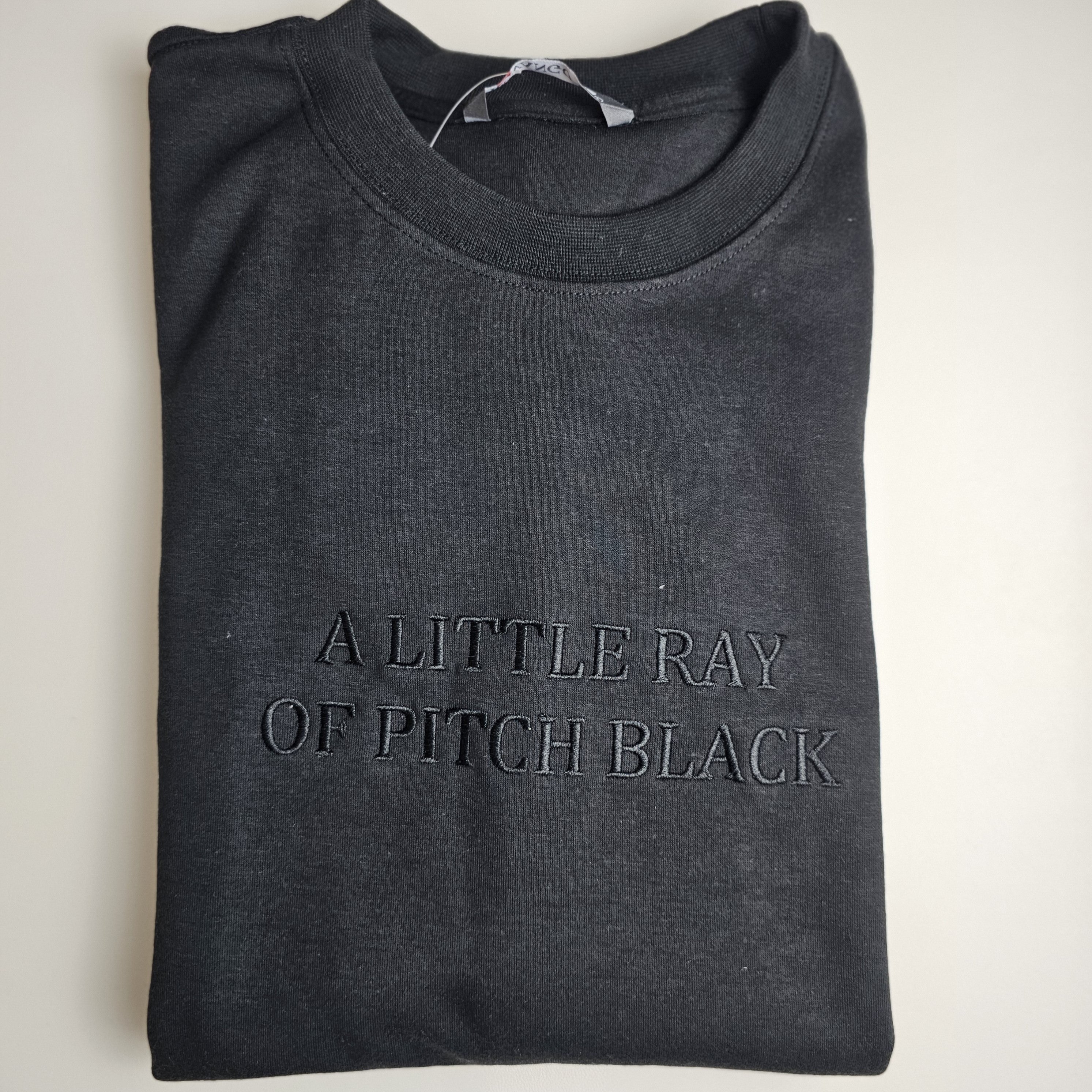 • Experience comfort and style with the A LITTLE RAY OF PITCH BLACK Embroidered Sweatshirt. Crafted for a cozy fit, this sweatshirt features detailed embroidery that adds a subtle yet sophisticated touch. Perfect for layering or wearing on its own, it combines warmth with a sleek, modern aesthetic suitable for everyday wear.