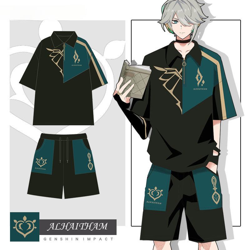 • Expertly designed Alhaitham cosplay set featuring a coordinated short-sleeved T-shirt and shorts combination. This ensemble delivers authentic character representation with attention to detail and quality materials. Perfect for conventions, photoshoots, or casual cosplay gatherings while ensuring comfort during extended wear.