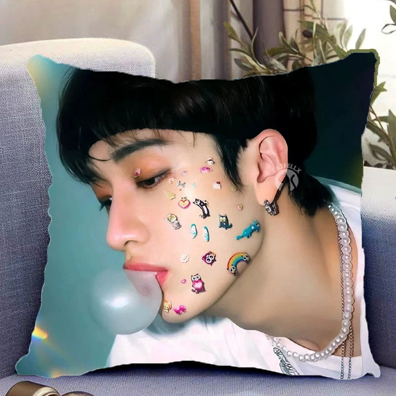 • Sink into comfort with this expertly crafted double-sided throw pillow featuring Bang Chan. Each side showcases distinct designs, offering versatile styling options for your space. The premium fabric blend ensures lasting softness and durability, while the generous fill provides optimal support for lounging, reading, or decorative display. Perfect for fans seeking both comfort and quality craftsmanship in their home essentials.