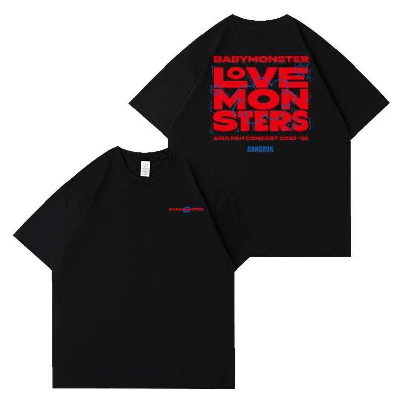 • BM LoveMonsters Tour Short Sleeve T-Shirt Celebrate your fandom with this classic tour tee featuring iconic LoveMonsters branding. Crafted from soft, breathable cotton, this short-sleeve shirt delivers comfort for everyday wear while showcasing your appreciation for the band. The timeless design works seamlessly with casual outfits, making it a versatile addition to any wardrobe. Perfect for concerts, casual hangouts, or simply expressing your musical taste. Available in multiple sizes for the ideal fit.