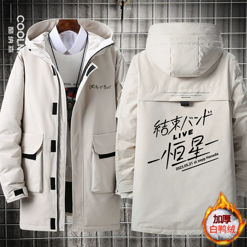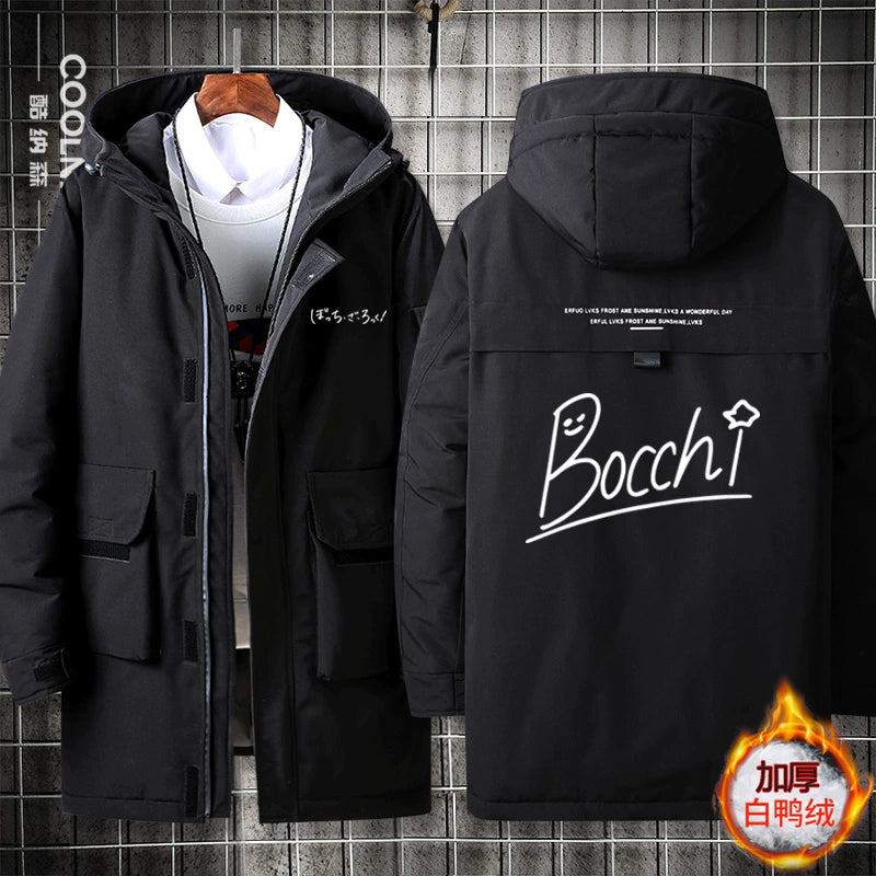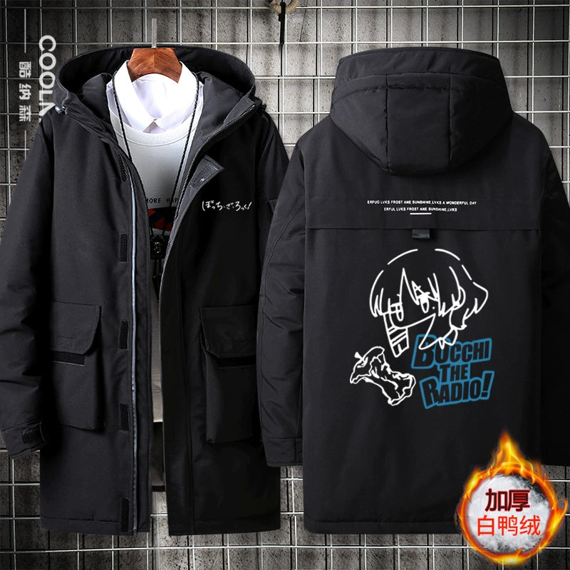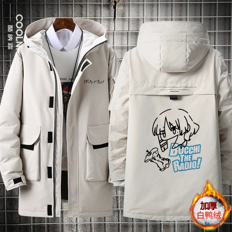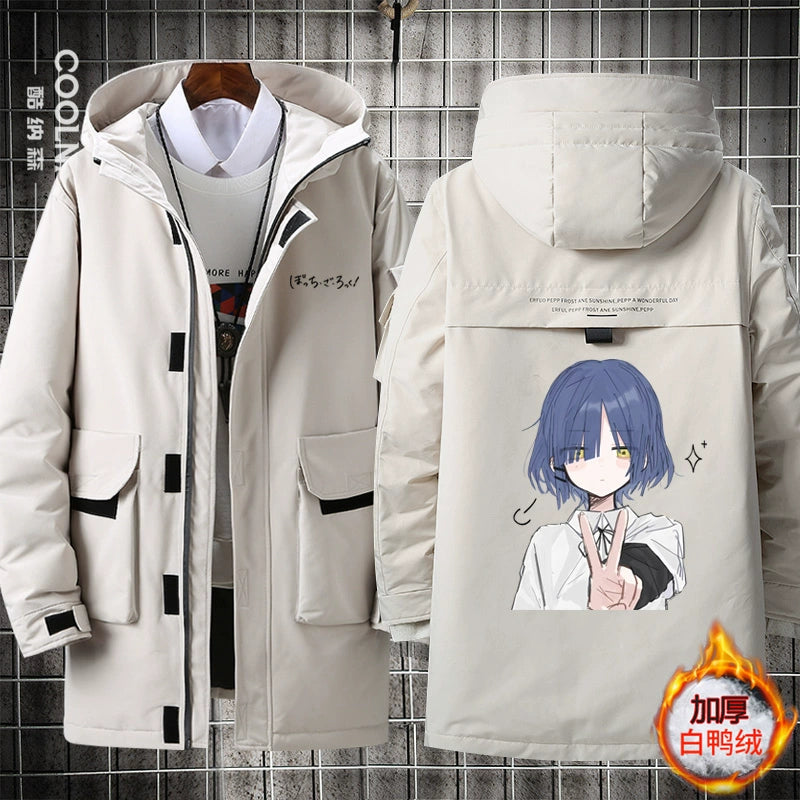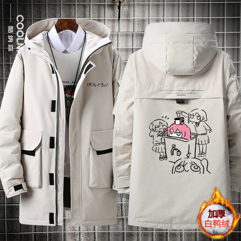 • Embrace winter comfort with this Bocchi anime-inspired medium-length hooded down jacket. Crafted with premium down insulation, it delivers exceptional warmth without excess bulk, making it ideal for cold-weather layering. The integrated hood provides extra protection against wind and snow, while the thoughtful design balances functionality with anime fandom appeal. Perfect for fans seeking both style and reliable seasonal performance, this jacket transitions seamlessly from casual outings to outdoor adventures. Quality construction ensures durability through multiple winters.