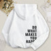 • Embrace comfort and positivity with the Casual Do What Makes You Happy Hoodie. Crafted for everyday wear, this hoodie offers a soft, cozy feel that keeps you warm while inspiring you to follow your joy. Its relaxed fit and quality fabric make it an ideal choice for casual outings or relaxing at home, blending comfort with a motivating message.