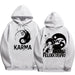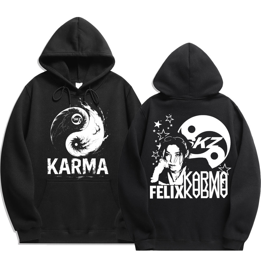 • Experience unmatched comfort with the Casual Skz Karma Printed Hoodie Top. Crafted for a relaxed fit, its soft fabric gently embraces you, making it perfect for unwinding or casual outings. The distinctive Karma print adds a subtle touch of character, while the hoodie design ensures warmth on cooler days. Ideal for those seeking both style and coziness in one versatile piece.