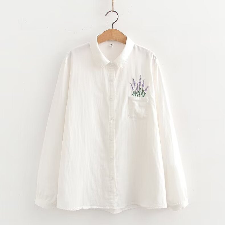 • Looking for a stylish and comfortable addition to your wardrobe? Look no further than this lovely Floral Embroidery Shirt, crafted with a flattering white hue and handy pockets. Perfect for a casual day out or a night on the town.