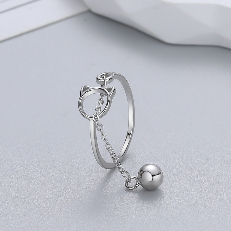• This Cat Bell Tassel Chain Ring is a delightful addition to any feline lover's jewelry collection. Made with a cute and playful design, this ring is perfect for adding a touch of whimsy to any outfit. The dangling cat bell adds a subtle jingle, making it a fun and unique accessory for any occasion. Add some charm to your look with this must-have piece.