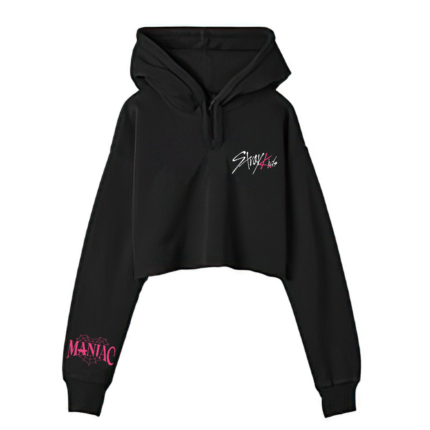 • Introducing the Chic Girls Kpop MANIAC Black Cropped Hoodie, the perfect combination of SEXY and CASUAL. Made for the confident fashionista, this hoodie adds a touch of edginess to any outfit. Stay stylish and comfortable all day long.