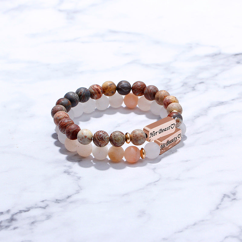 • Enhance your love with our Chic His Beauty Her Beast Stone Couple Bracelet. Crafted with love and finesse, this lovely bracelet symbolizes the unbreakable bond between two lovers. The perfect gift to express your love and strengthen your relationship. Order now and cherish your love forever.