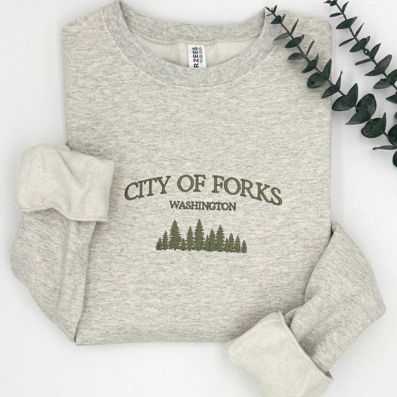 • The City of Forks Embroidered Sweatshirt combines comfort with distinctive style through its detailed embroidery. Crafted for durability and a relaxed fit, it offers warmth and a refined look suitable for everyday wear. This sweatshirt is an excellent choice for those seeking a blend of casual comfort and expert craftsmanship.