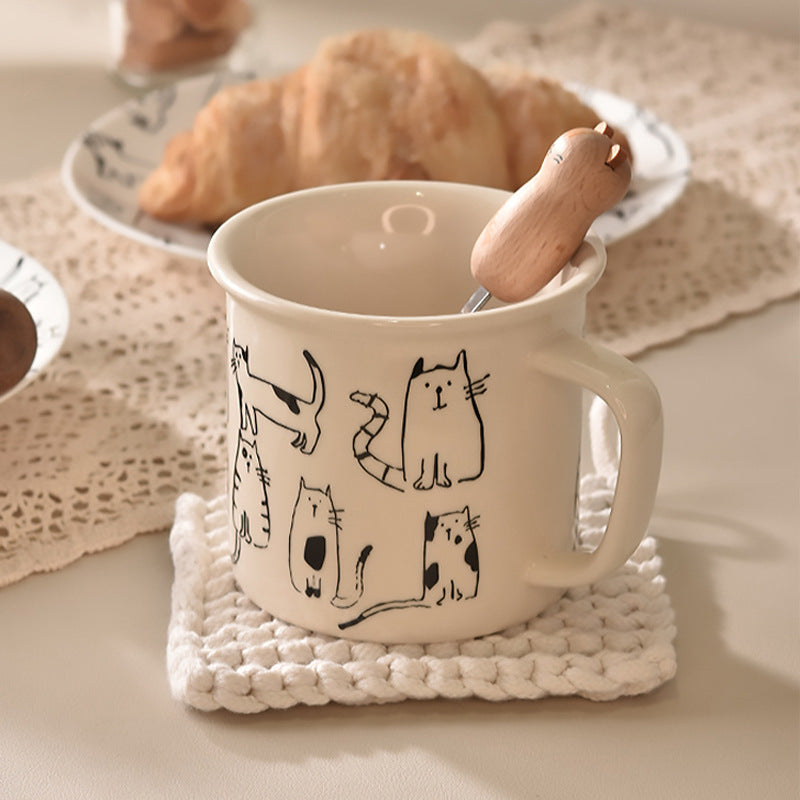 • This Creative Cartoon Cat Coffee Mug features an adorable design that is bound to brighten up your morning routine. With its cute cat portrait, it will surely bring a smile to your face while enjoying your favorite beverage. Made from high-quality materials, this mug is both durable and charming.