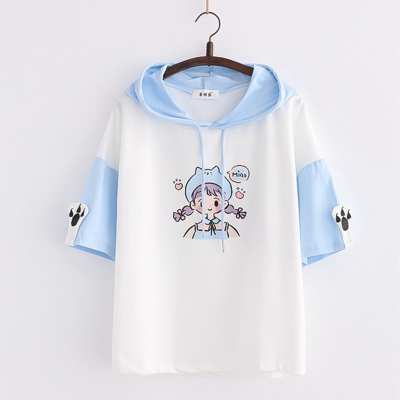 • Introducing our Cute Cartoon Girl Printed Color Block Hooded T-shirt! This adorable shirt features a convenient drawstring and a relaxed fit, perfect for everyday wear. Made with high-quality materials for ultimate comfort and style. Get yours today and elevate your wardrobe!