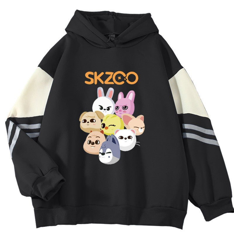 • This cozy and stylish hoodie is perfect for any casual occasion. Its loose fit and striking color block design make it a versatile addition to any wardrobe. Stay warm and on-trend with this cute and comfortable SKZ Doll print hoodie.