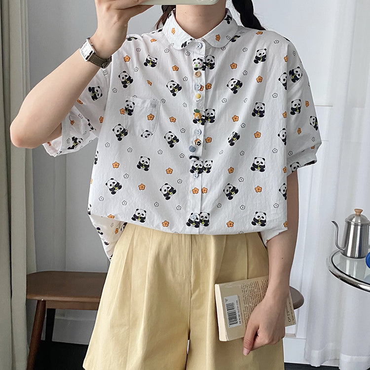 • This cute short-sleeved shirt is perfect for women who value both style and comfort. Made from cozy material and designed with a loose fit, it provides a comfortable and relaxed feel all day. With vibrant animal prints, it's a fun addition to any wardrobe.