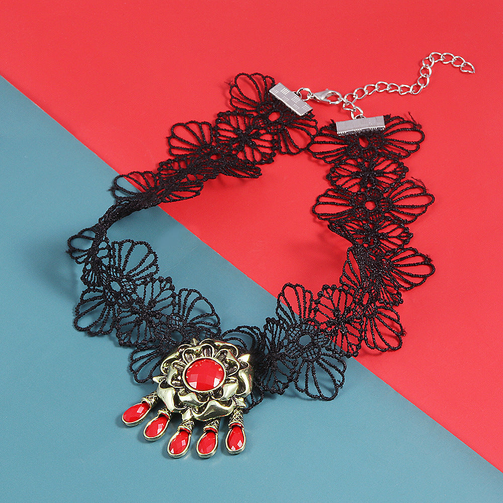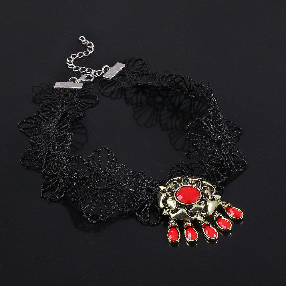 • Add a touch of elegance to your game with our Vampire Lace Collar Necklace. The chic design is perfect for vampire enthusiasts and adds a sophisticated touch to any outfit. Show off your love for the supernatural in style.