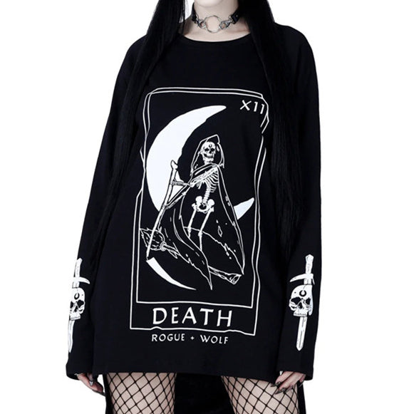 • This gothic sweatshirt features a REAPER STYLE letter print against a BLACK background, while its LOOSE fit adds comfort and style. Perfect for fans of the dark aesthetic, this sweatshirt is a must-have for anyone looking to make an impact with their fashion choices.