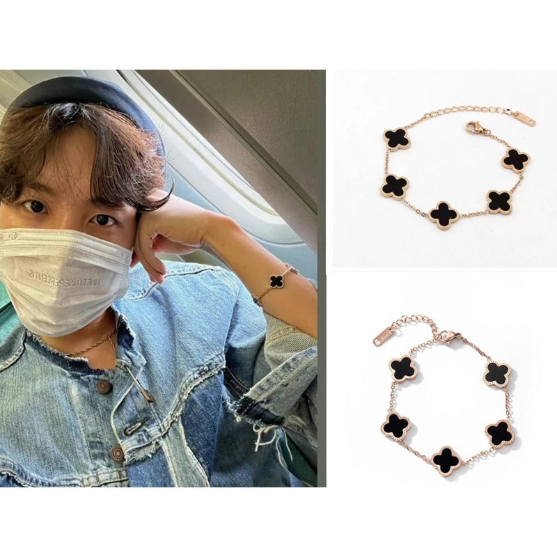 • Elevate your style with the J-HOPE Four Leaf Clover Bracelet, a refined accessory symbolizing luck and positivity. Crafted with attention to detail, this bracelet combines elegance with meaningful design, making it a sophisticated addition to any collection. Its subtle charm and expert craftsmanship ensure it complements both casual and formal looks effortlessly.