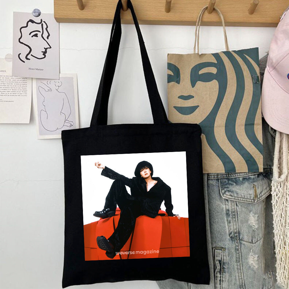 • Carry your essentials with style using the J-hope Printed Canvas Tote Bag. Crafted from durable canvas, this tote offers both practicality and a trendy look. Its spacious interior easily fits your daily items, making it perfect for errands, school, or casual outings. Featuring a vibrant print inspired by J-hope, it’s a must-have accessory for fans and fashion enthusiasts alike. Lightweight yet sturdy, this tote combines functionality with a unique design that stands out effortlessly.