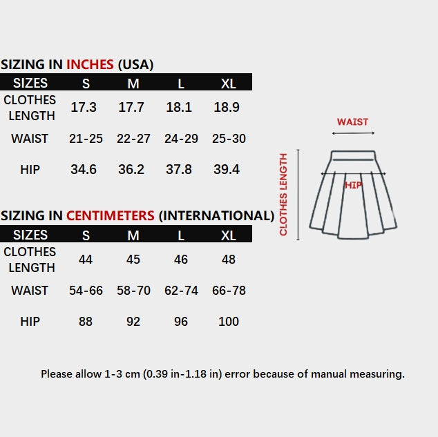 • This Korean style retro pleated half skirt brings chic and versatility to any outfit. With its unique chain detail, it adds a touch of sophistication to your look. Perfect for any occasion, this skirt is a must-have for any fashion-forward woman.