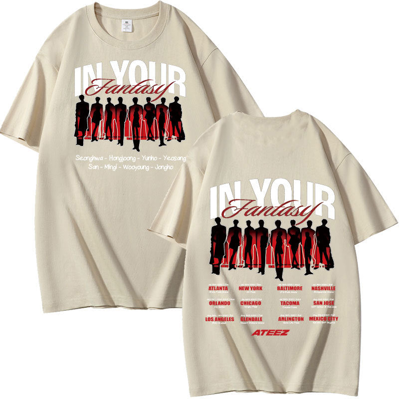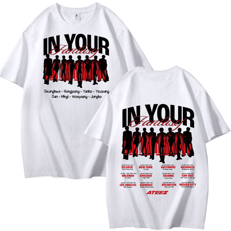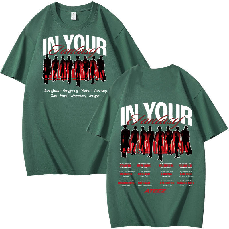 • Experience comfort and style with the KPOP Album In Your Fantasy Cotton Short-sleeved T-shirt. Crafted from soft cotton, this tee offers breathability and a relaxed fit, perfect for everyday wear or showcasing your love for KPOP. Its casual design pairs effortlessly with any outfit, making it a versatile addition to your wardrobe. Ideal for fans who want to combine fandom with comfort.