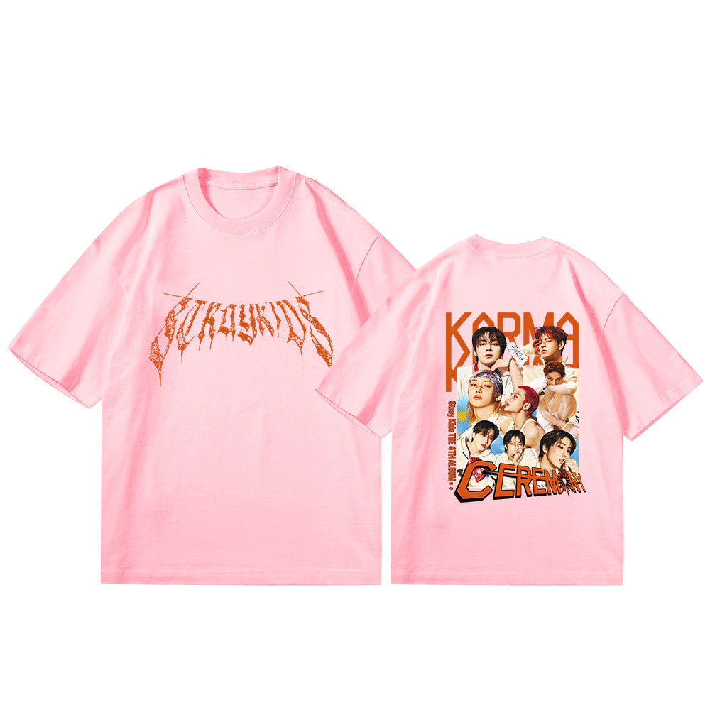 • This KPOP Album KARMA CEREMONY Poster T-Shirt blends style with comfort, featuring a soft fabric that feels cozy against your skin. Its exclusive design pays tribute to the KARMA CEREMONY album, making it a must-have for dedicated fans. Ideal for casual wear, this t-shirt offers both warmth and a relaxed fit, ensuring you stay comfortable while showcasing your passion for KPOP.