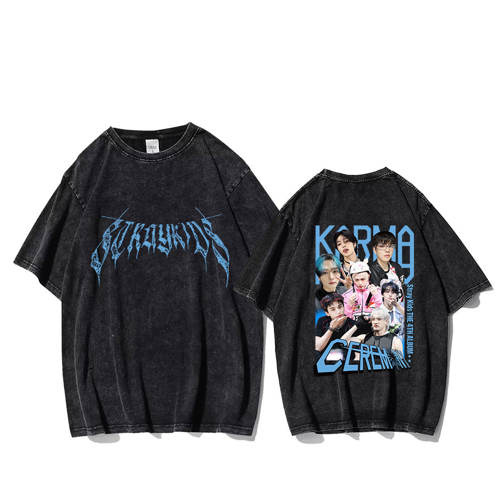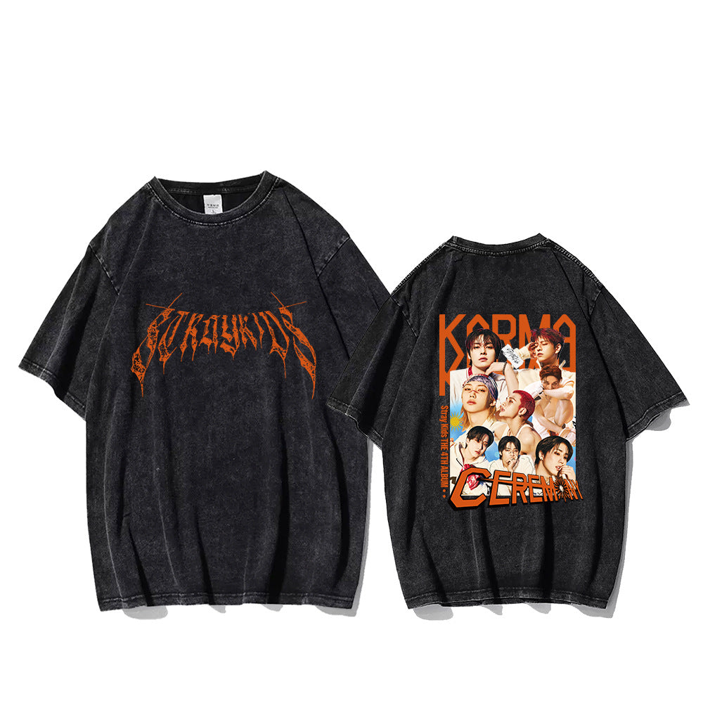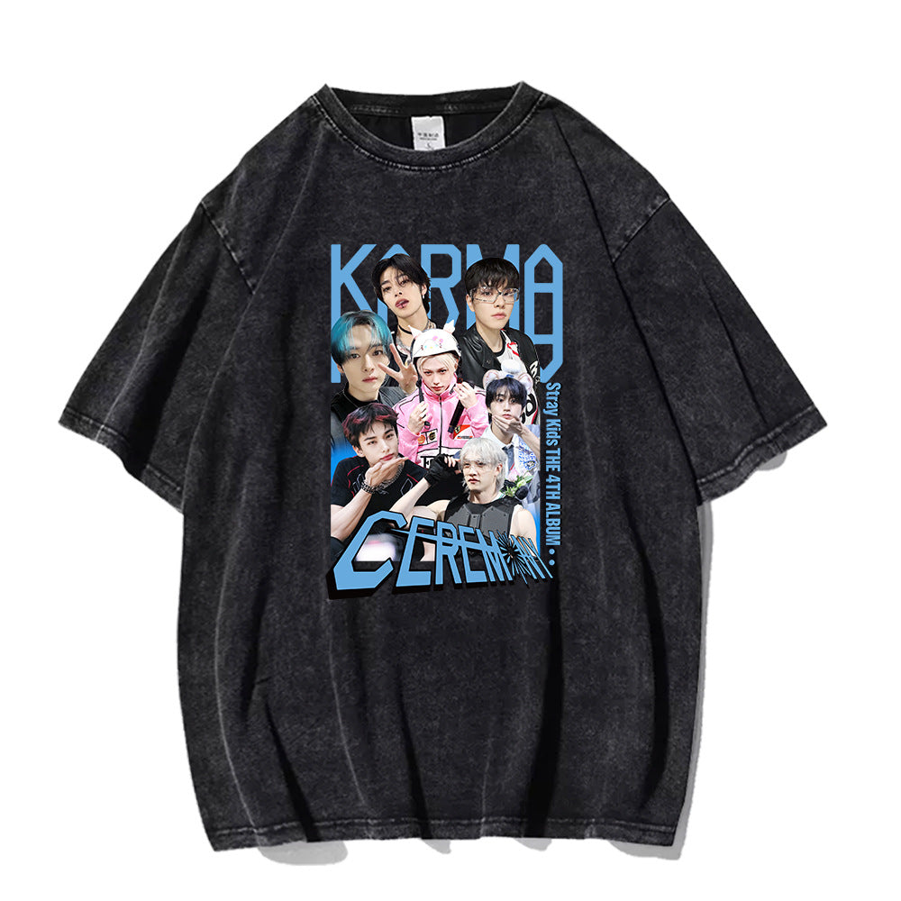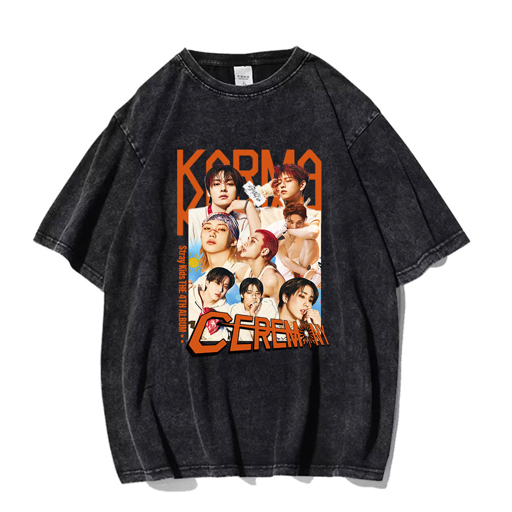 • The KPOP Album Poster Karma CEREMONY Washed T-shirt offers an authentic vintage feel with its unique washed fabric, highlighting your passion for KPOP in a subtle, stylish way. Crafted for comfort and durability, this loose-fit tee ensures breathability and ease of movement, making it ideal for everyday wear or concerts. Its design captures the essence of the Karma CEREMONY album, allowing you to showcase your fandom with expert style and confidence.