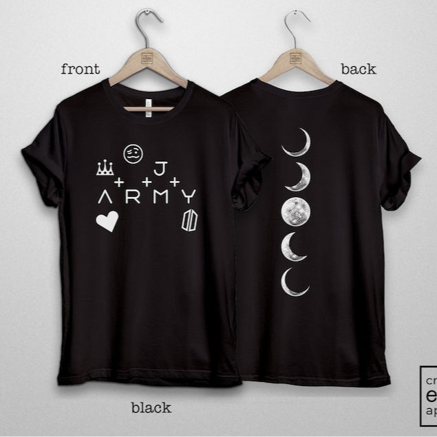 • This Kpop Army Tattoo Printed T-shirt offers a relaxed fit designed for comfort and style. Crafted with quality materials, it features a distinctive tattoo-inspired print that resonates with Kpop enthusiasts. Ideal for casual wear, this loose T-shirt combines cultural flair with everyday practicality, making it a versatile addition to your wardrobe.