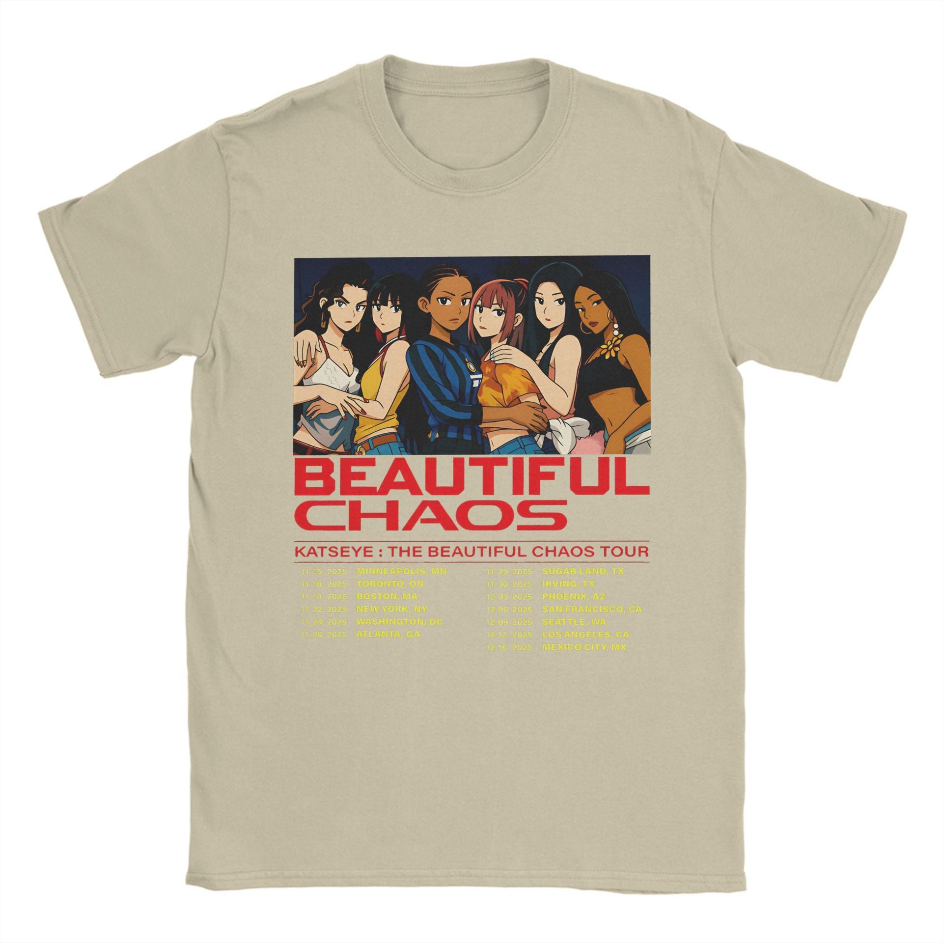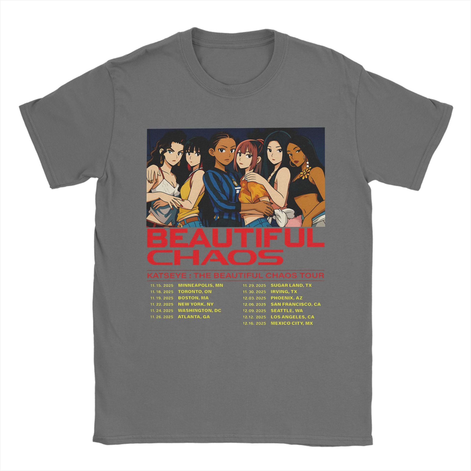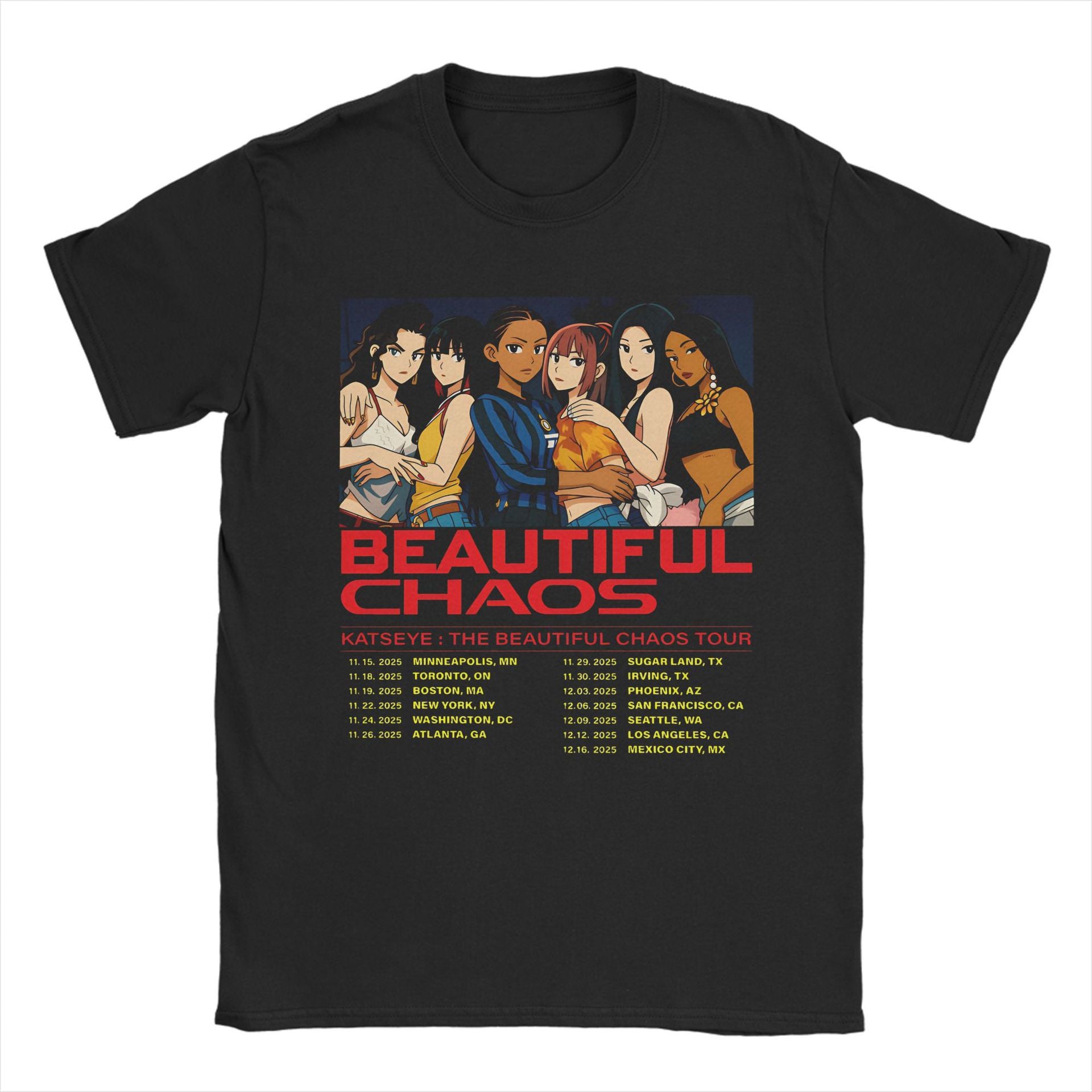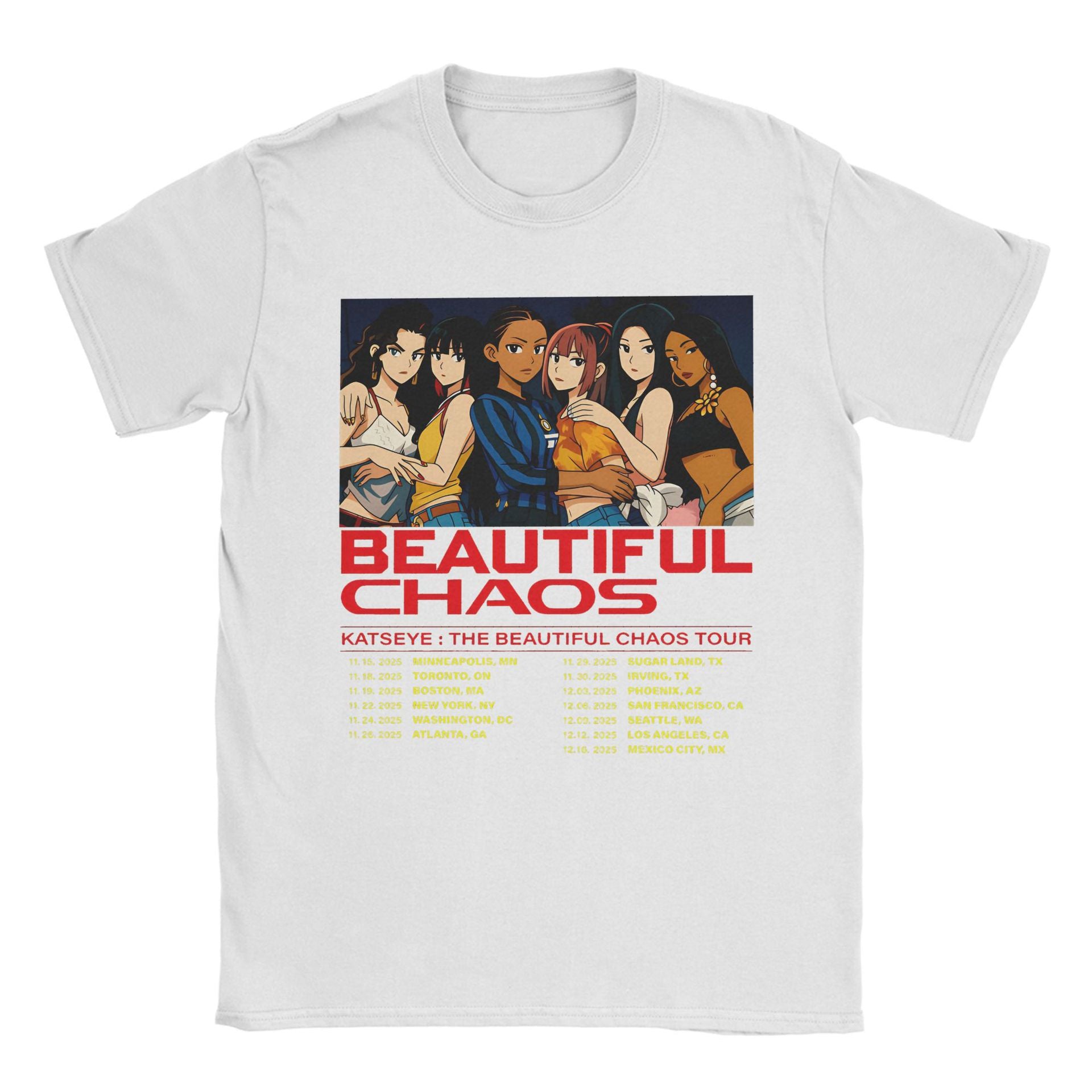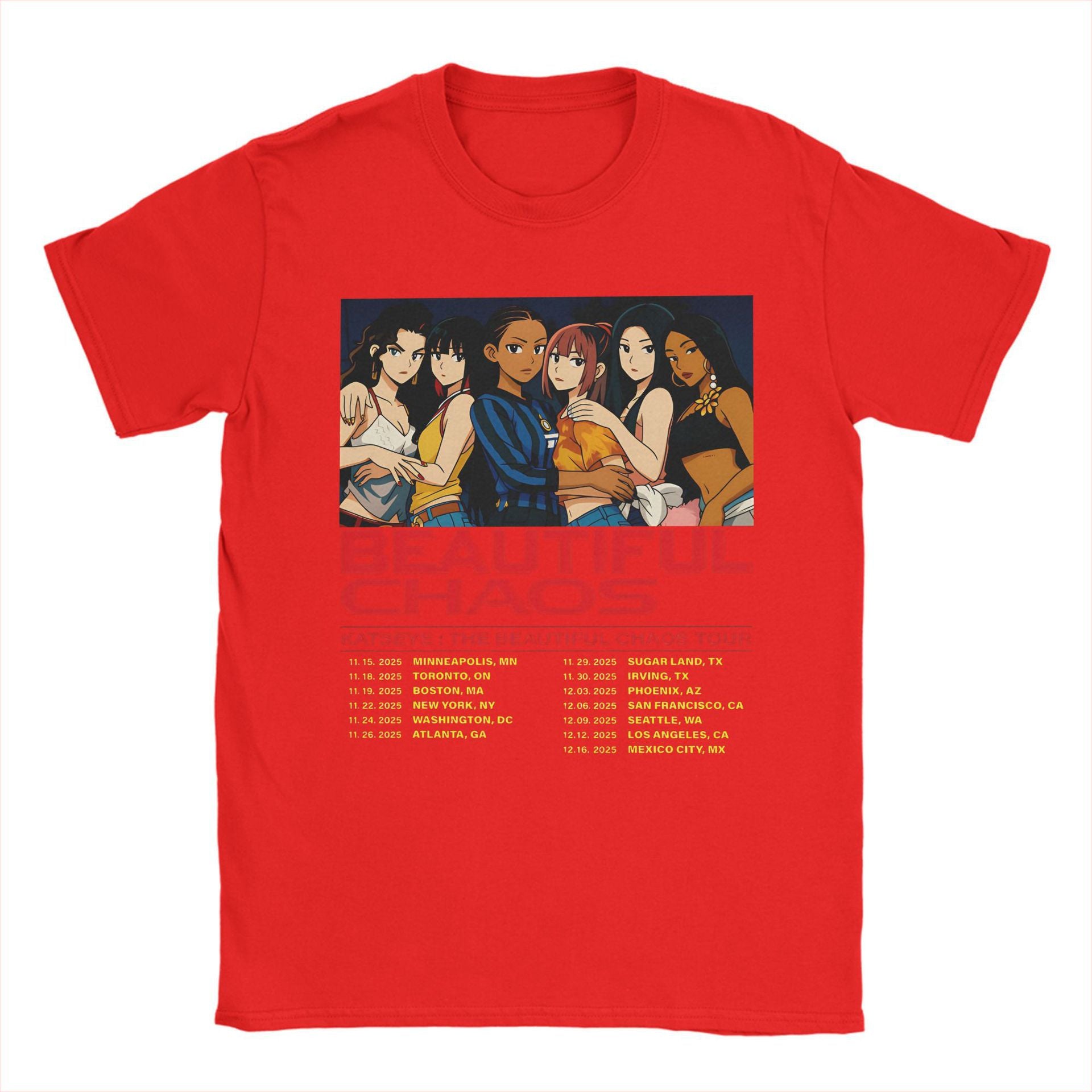 • The Kpop Beautiful Chaos Graphic Print Cotton T-shirt offers a relaxed fit crafted from soft, breathable cotton for all-day comfort. Its distinctive graphic design captures the dynamic energy of Kpop culture, making it a stylish choice for casual wear or fan events. Durable stitching ensures long-lasting wear, while the loose silhouette provides ease of movement and a modern aesthetic. Ideal for those seeking comfort without compromising on trend-forward style.