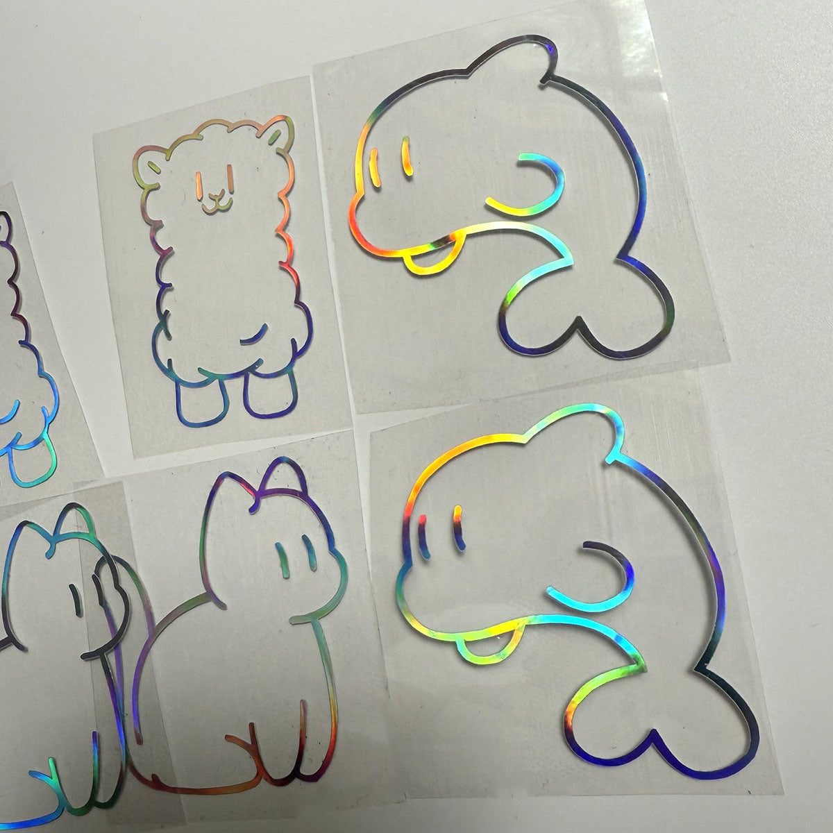 • Bring playful charm to your collection with these KPOP Cartoon Animal Laser Stickers. Featuring vibrant, holographic finishes that catch the light beautifully, each sticker showcases adorable animal designs inspired by K-pop aesthetics. Perfect for personalizing laptops, water bottles, phone cases, or journals, these durable stickers add a touch of whimsy to any surface. The laser-cut precision ensures crisp edges and eye-catching detail. Ideal for fans and collectors seeking unique, eye-catching accessories that celebrate both cute culture and K-pop fandom.