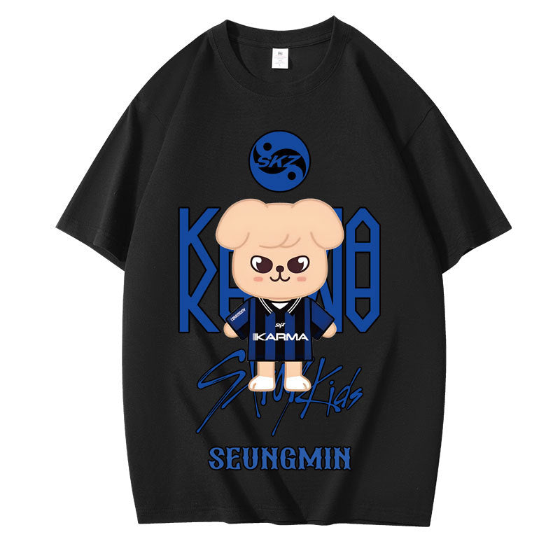 • This KPOP Cartoon Karma Print Short Sleeve T-Shirt combines vibrant anime-inspired art with comfortable fabric for everyday wear. Its bold graphic adds a playful edge, perfect for fans who want to express their love for KPOP culture casually and confidently. Designed for a relaxed fit, it keeps you comfortable whether you're out with friends or at a concert.