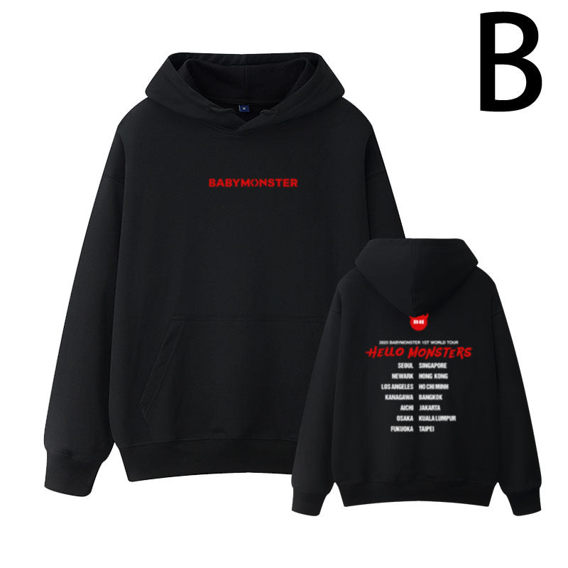 • Stay comfortable and stylish with the Kpop Concert HELLO MONSTERS Pullover Hoodie. Designed for fans who want to showcase their passion, this hoodie offers a relaxed fit and soft fabric that keeps you cozy during long events or casual outings. Its bold "HELLO MONSTERS" design makes a statement, perfect for expressing your fandom with confidence and ease.