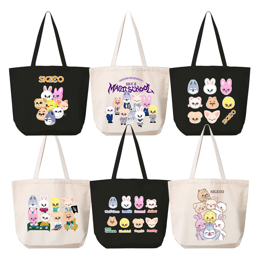 • This Kpop Doll Tote Canvas Portable Bag is a cute and trendy accessory for any Kpop fan. Made from durable canvas, it is both stylish and practical. Perfect for carrying essentials while showing off your love for Kpop.
