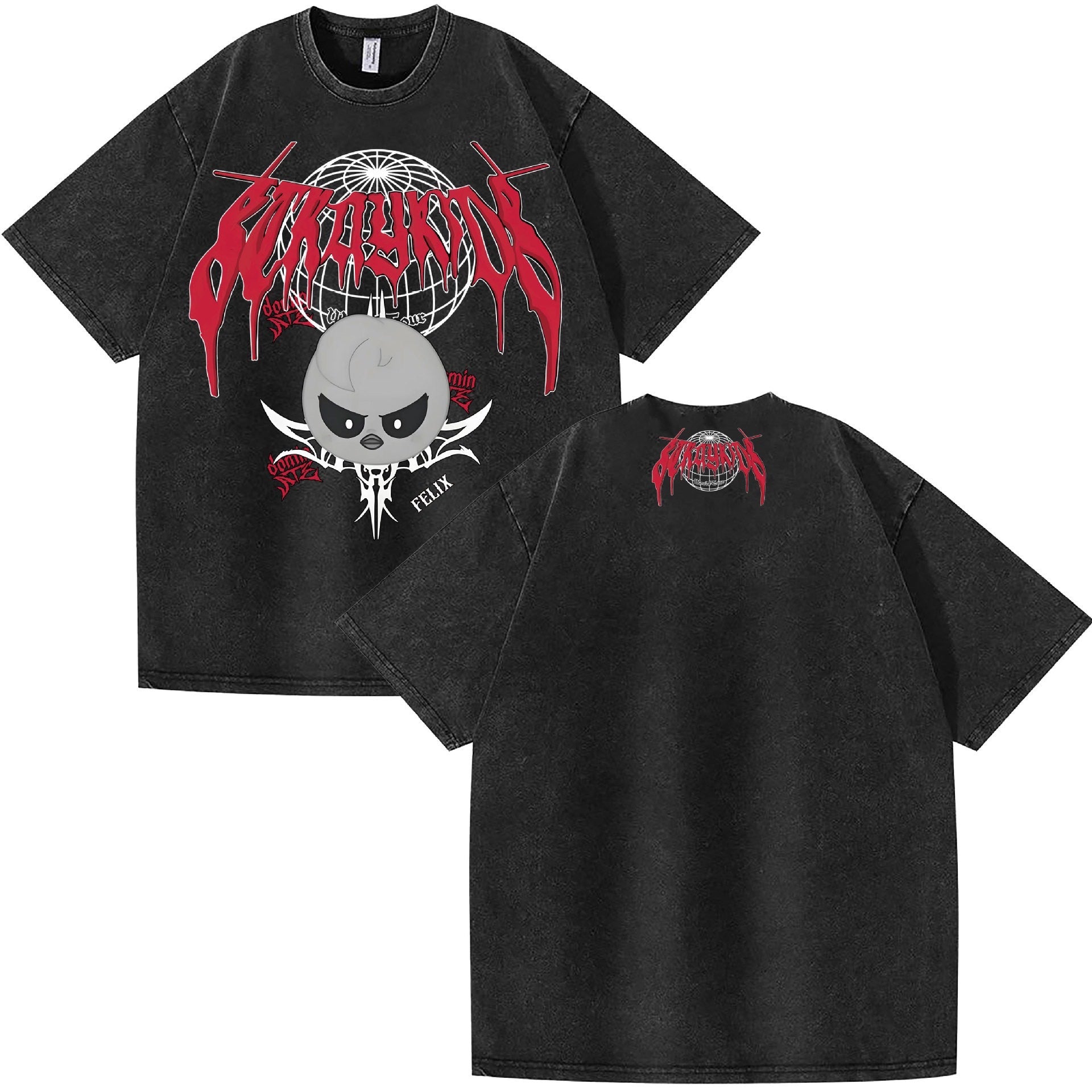 • This Kpop Evil Cartoon Logo Washed T-Shirt combines edgy design with a relaxed fit, offering both style and comfort. The washed fabric provides a vintage look and soft feel, making it ideal for everyday wear. Perfect for fans seeking a unique statement piece that blends pop culture with casual fashion.