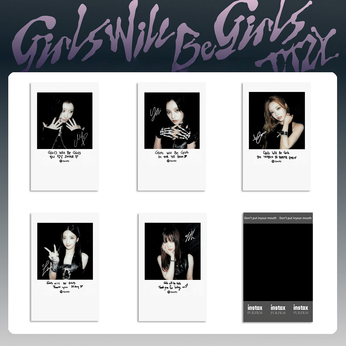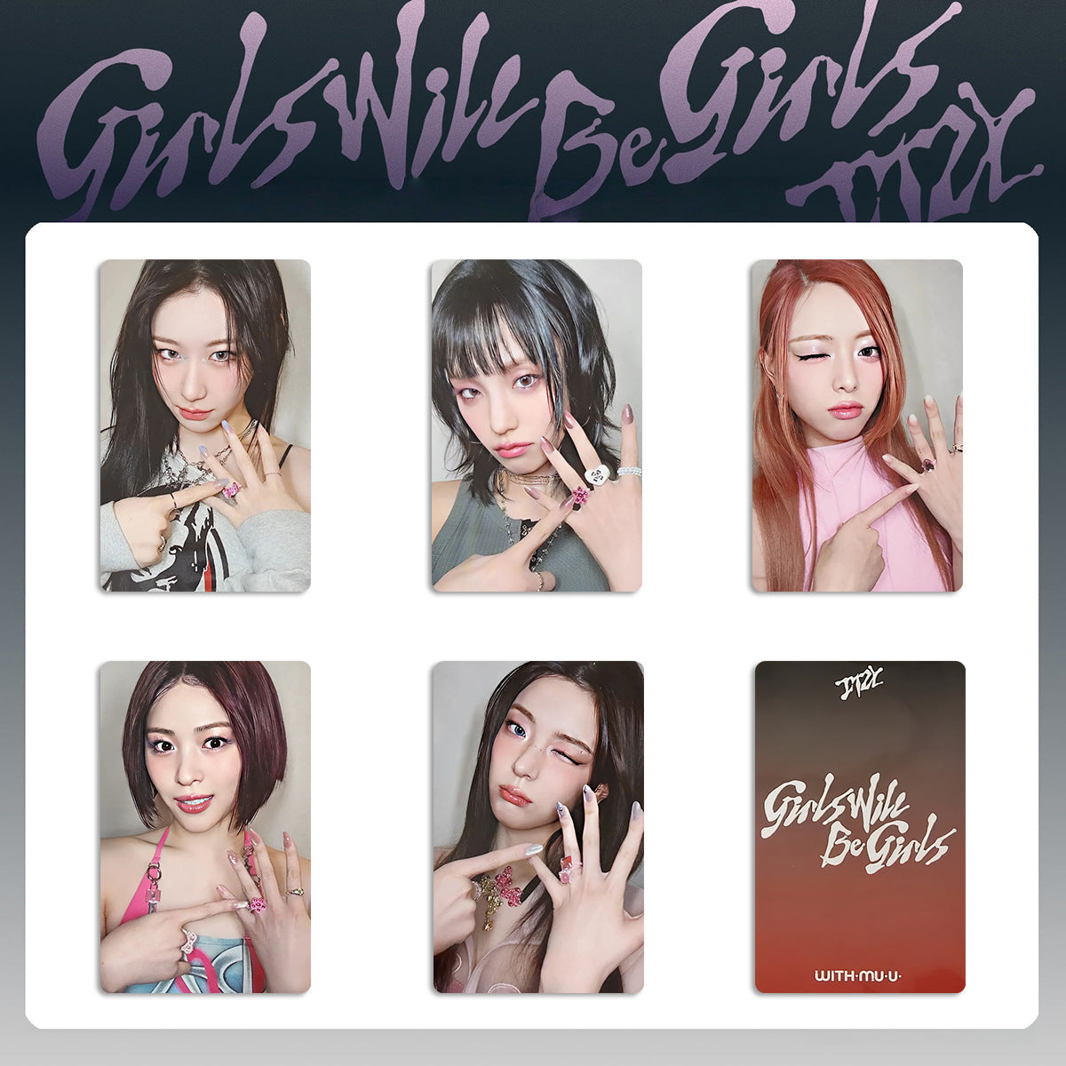 • Capture the vibrant spirit of KPOP with these Girls Will Be Girls Album PhotoCards. Perfect for dedicated collectors and fans, each card features high-quality imagery that highlights the unique style and charisma of your favorite idols. These photo cards offer a tangible connection to the music and culture, ideal for display or personal keepsakes, enhancing any collection with exclusive visuals from the album.