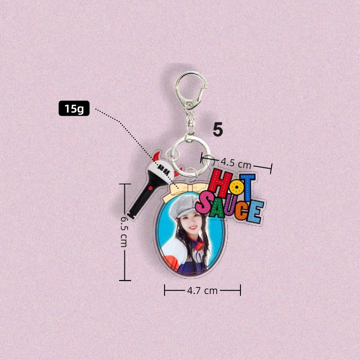 • Add a playful pop of flavor to your everyday essentials with the KPOP HOT SAUCE ASA Pendant Keychain. Expertly crafted, this charming accessory combines trendy K-pop style with a fun hot sauce motif, making it perfect for fans and collectors alike. Durable and lightweight, it easily attaches to keys or bags, keeping your favorite vibe close wherever you go. Elevate your accessory game with this unique keychain that blends cuteness and fandom effortlessly.
