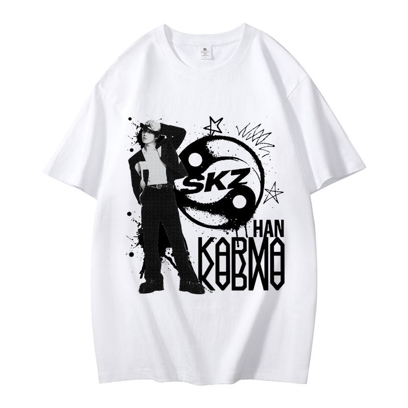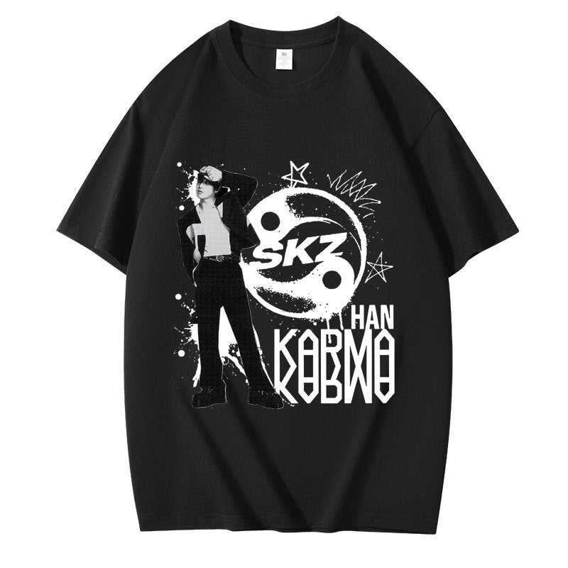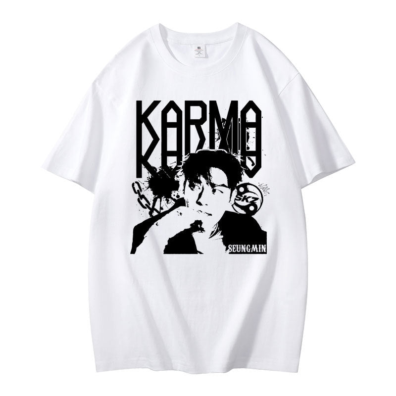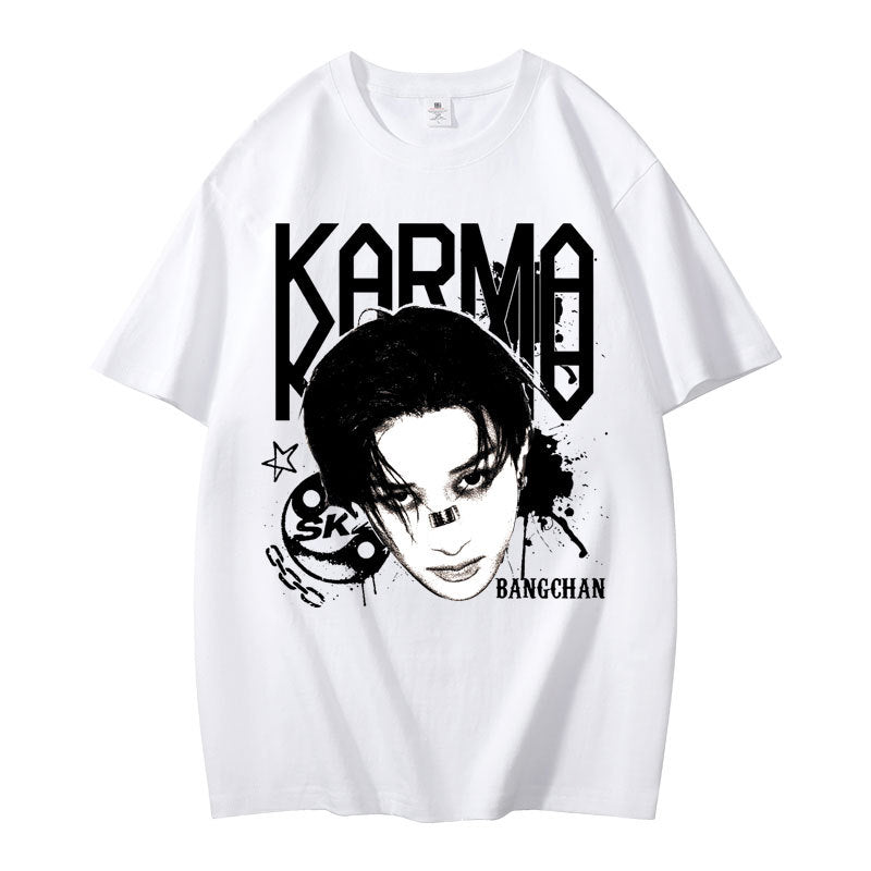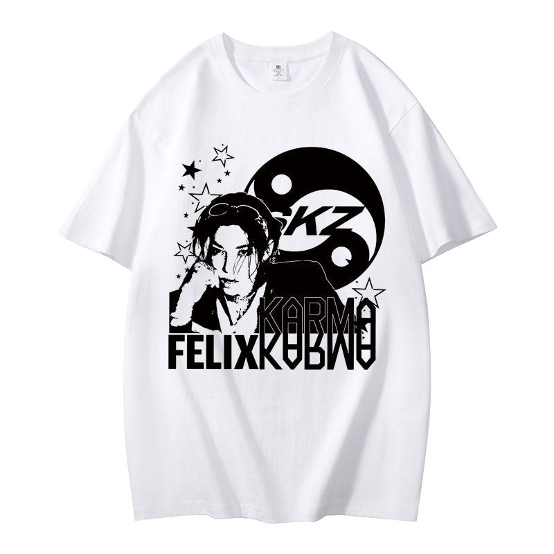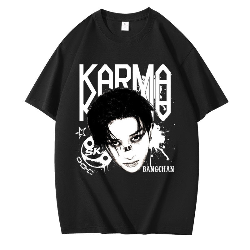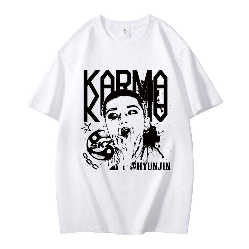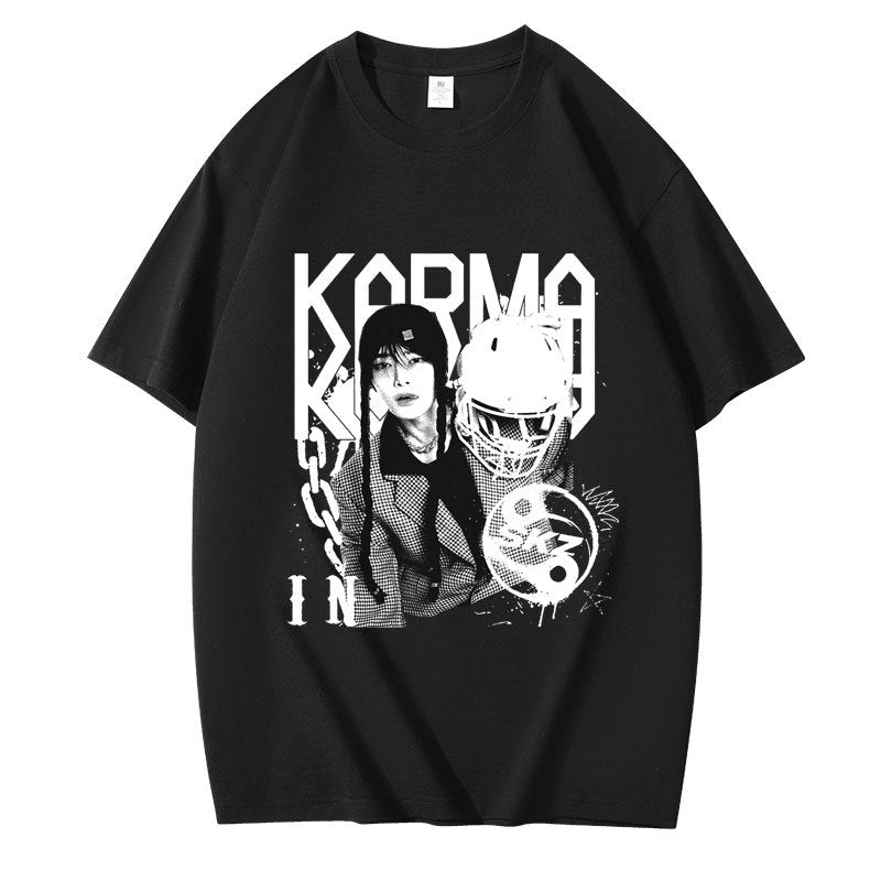 • Embrace casual comfort with the Kpop Karma Graphic Print Short Sleeve T-Shirt. Crafted for a relaxed fit, this tee combines soft fabric with striking graphic details that showcase your unique style. Ideal for everyday wear, it pairs effortlessly with your favorite jeans or shorts, offering both comfort and confident expression in any casual setting.