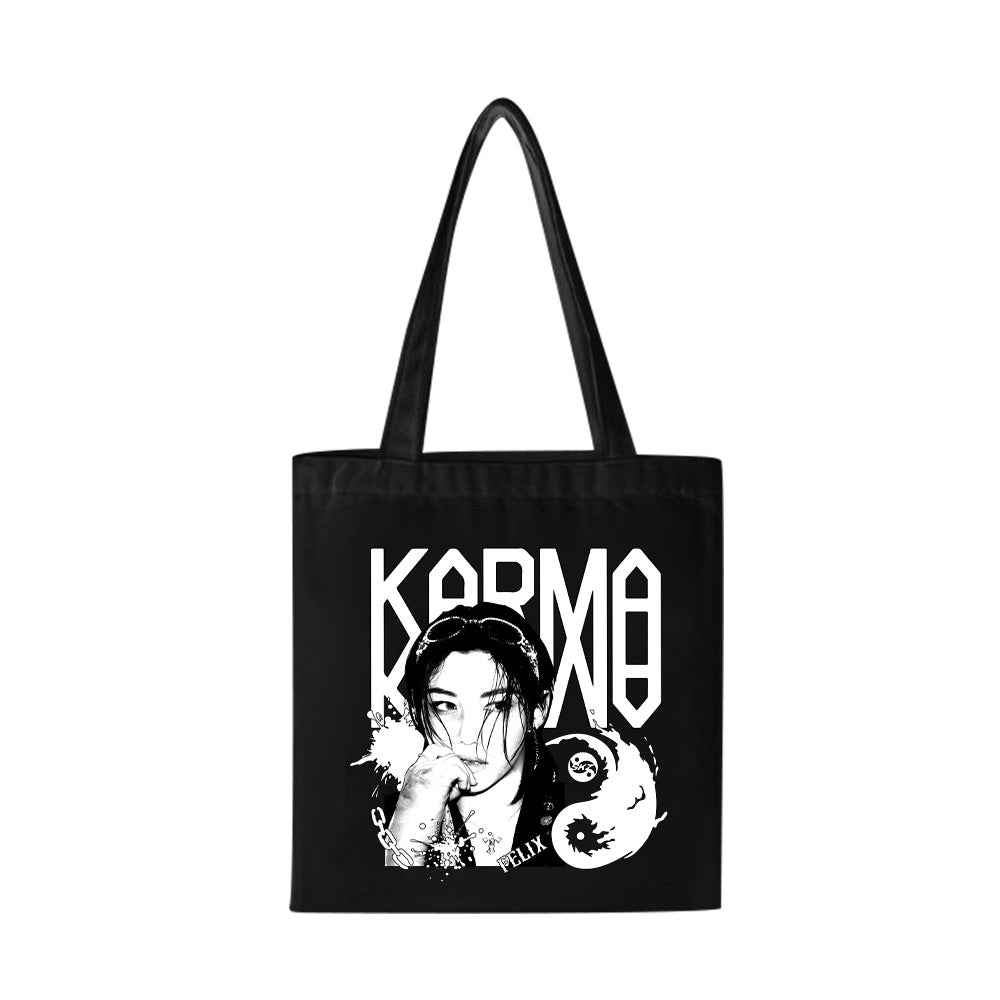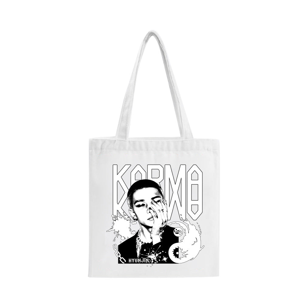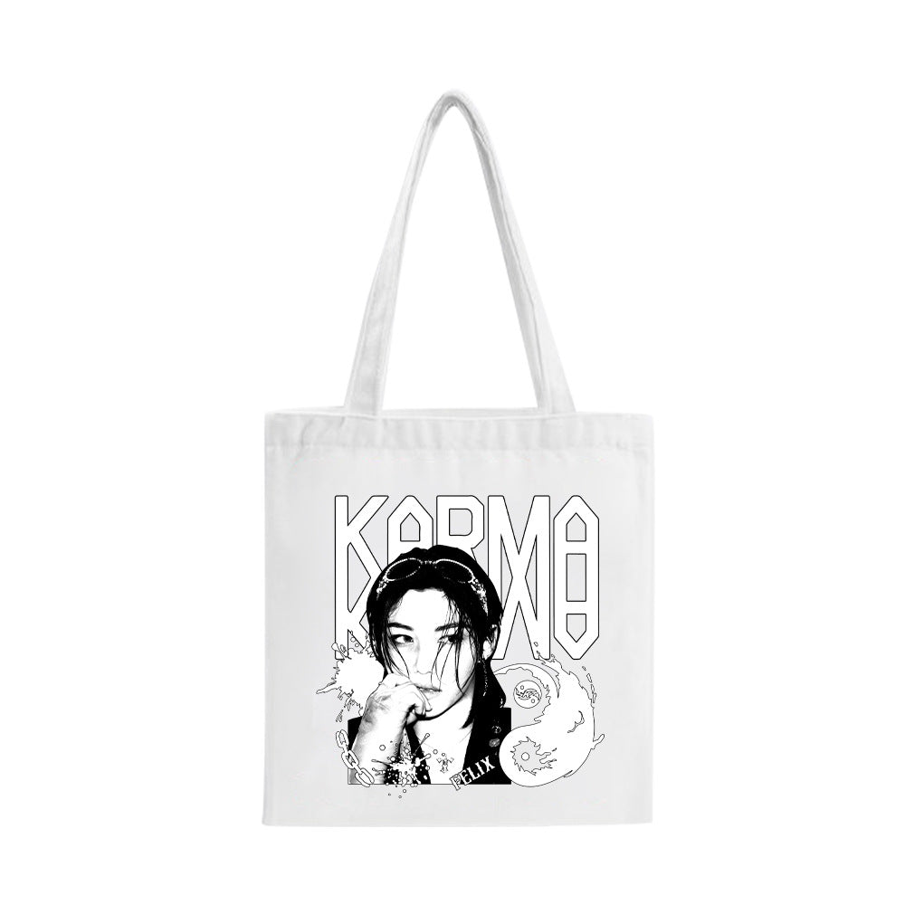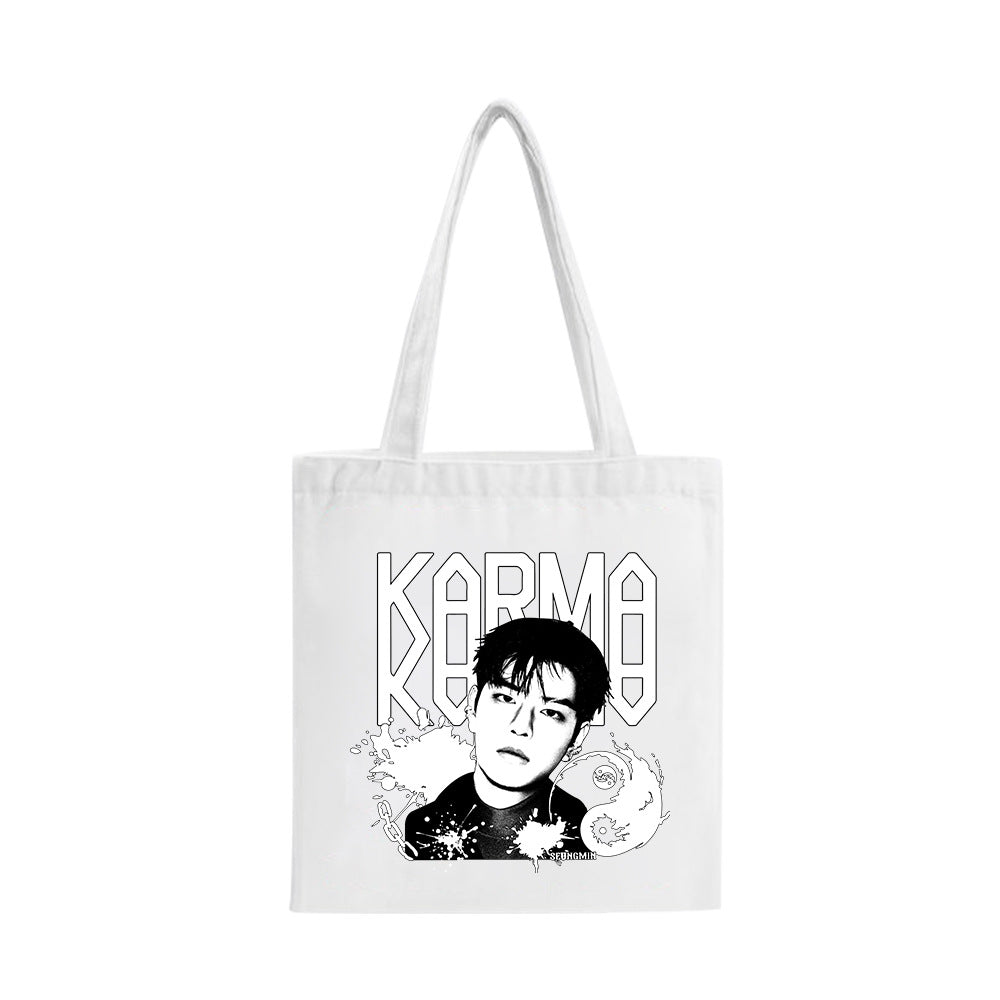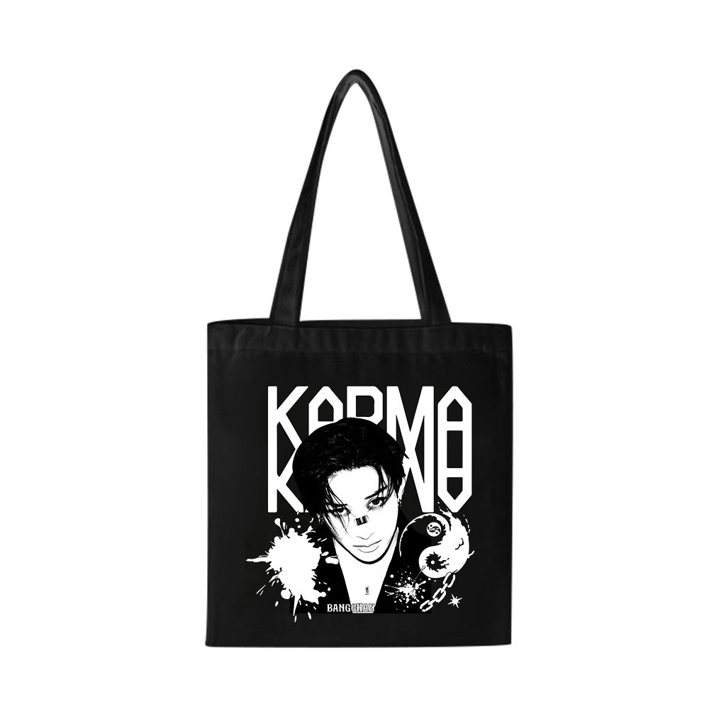 • Carry your love for KPOP KARMA with this Ink Poster Tote Bag. Made from durable fabric, it offers ample space for your daily essentials while showcasing a unique ink poster design that stands out. Perfect for fans who want to blend style and functionality effortlessly.