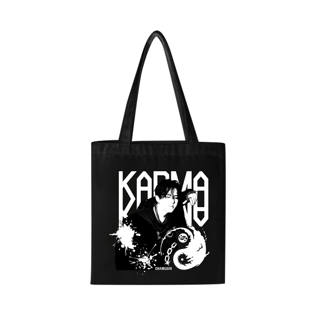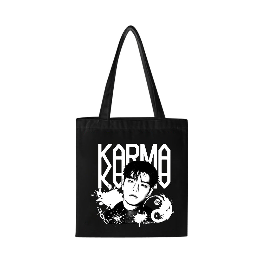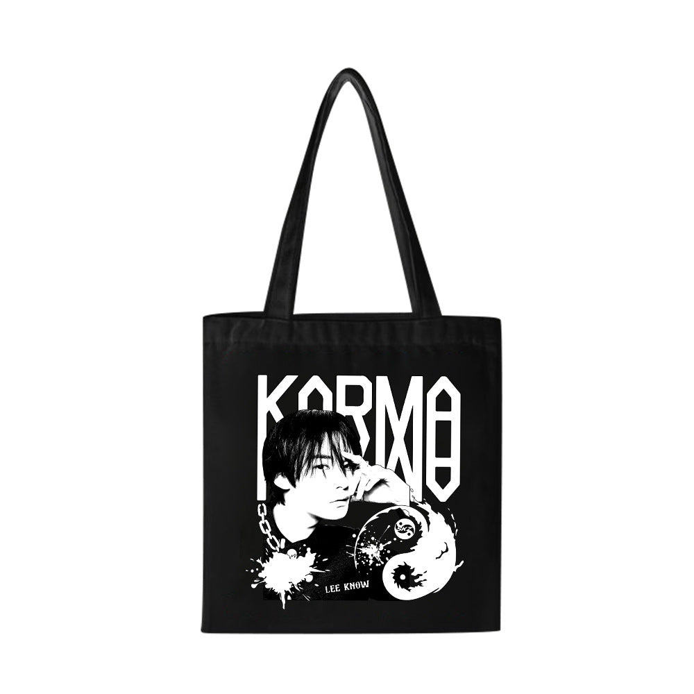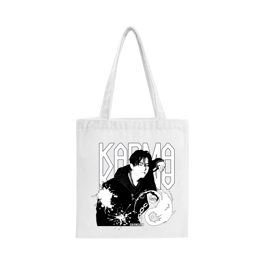 • Carry your love for KPOP KARMA with this Ink Poster Tote Bag. Made from durable fabric, it offers ample space for your daily essentials while showcasing a unique ink poster design that stands out. Perfect for fans who want to blend style and functionality effortlessly.