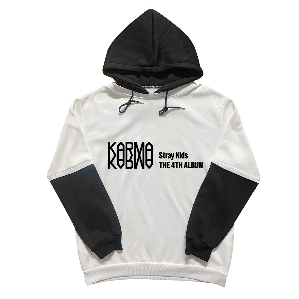 • Designed for ultimate comfort, the KPOP KARMA Logo Black and White Sleeves Hoodie combines a soft fabric blend with a relaxed fit to keep you cozy during everyday wear. The striking black and white sleeve design adds a modern edge, while the prominent KARMA logo showcases your distinctive style. Perfect for casual outings or lounging, this hoodie balances warmth and breathability, ensuring all-day comfort without compromising on aesthetic appeal.