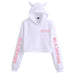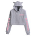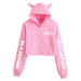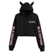 • This slim Kpop Letter Printed Cat Ears Crop Hoodie is a must-have for any Kpop fan. Its unique design features cat ears and a bold letter print, making it both stylish and eye-catching. The slim fit ensures a flattering silhouette, perfect for showing off your love for Kpop. Made with high-quality materials, it's comfortable and durable.