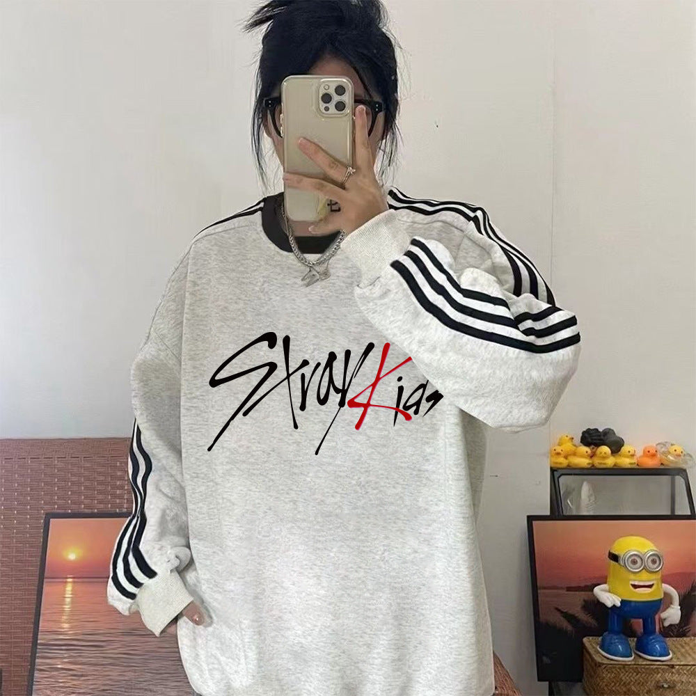 • The KPOP Logo Stripe Crew Neck Sweatshirt blends casual comfort with subtle style. Crafted with soft fabric, it offers cozy warmth and a relaxed fit ideal for everyday wear. The iconic KPOP logo paired with classic stripe detailing adds a trendy touch, making it a versatile piece that pairs well with jeans or joggers. Perfect for fans seeking a mix of comfort and street-inspired fashion.