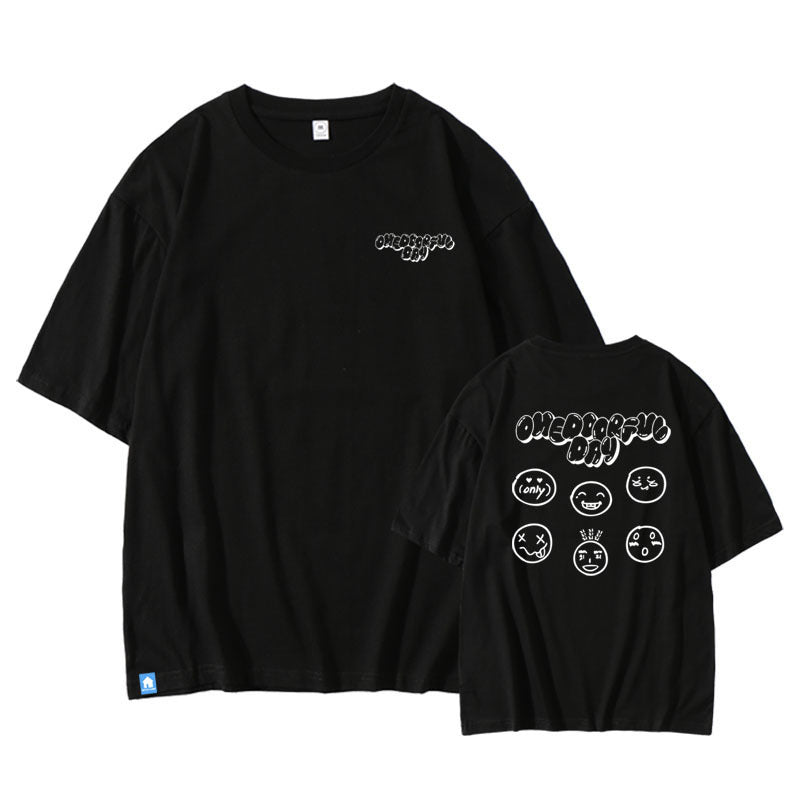 • The KPOP ONEDOORfulDay Round Neck T-shirt offers a comfortable fit with its classic round neckline, designed for everyday wear. Crafted to provide breathability and ease of movement, it suits both casual outings and relaxed indoor settings. Ideal for fans seeking a subtle yet stylish way to express their KPOP enthusiasm.