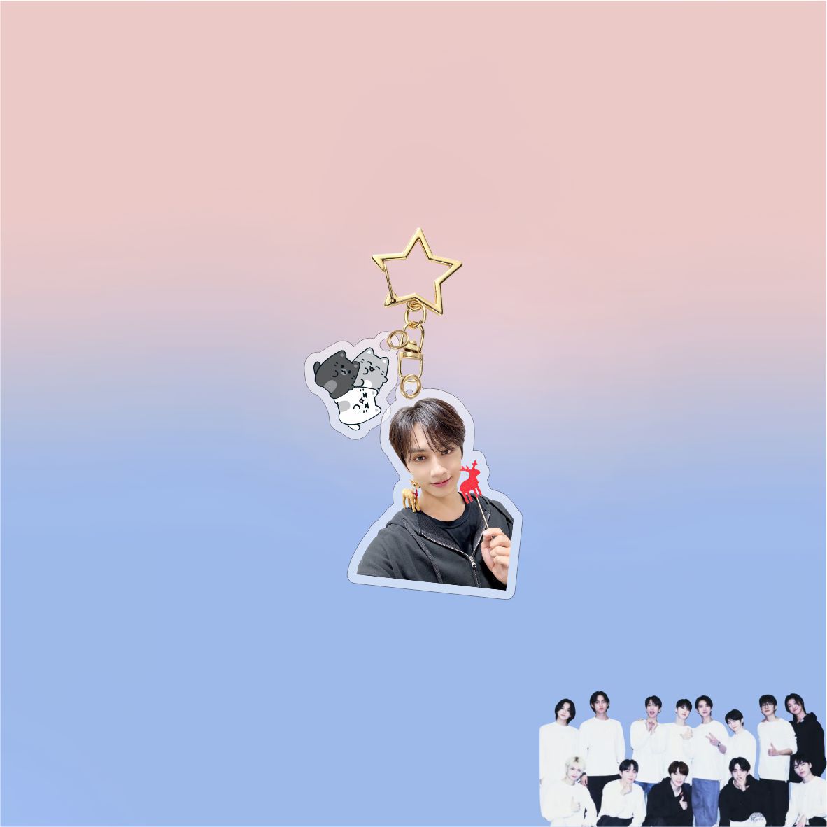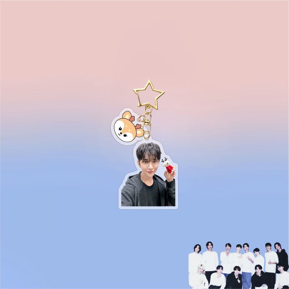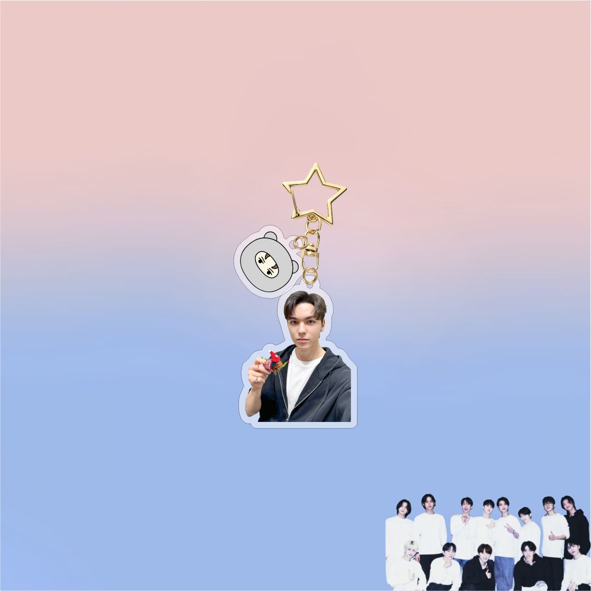 • Add a charming touch to your keys or bags with this KPOP Seventeen Cartoon Acrylic Keychain Pendant. Featuring adorable, detailed cartoon designs of your favorite Seventeen members, it’s crafted from durable acrylic to withstand daily use. Lightweight and vibrant, this keychain is perfect for fans looking to express their passion with a cute, collectible accessory.
