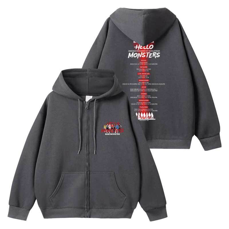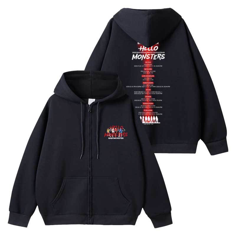 • Stay comfortable and stylish with the KPOP Tour Hello Monsters Graphic Hoodie Jacket. This cozy hoodie features a bold graphic design inspired by the energy of KPOP tours, making it perfect for fans wanting to showcase their passion. Crafted with soft, durable fabric, it offers warmth and flexibility for everyday wear or casual outings. Elevate your wardrobe with this unique piece that blends fan culture with streetwear appeal.