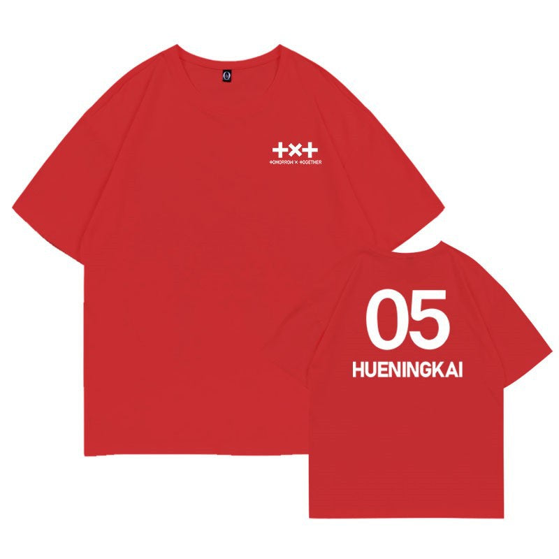 • The KPOP TXT Letter Round Neck Short-sleeved T-shirt offers a comfortable loose fit ideal for casual wear. Crafted with a soft fabric, it features the iconic TXT lettering on the front, making it a stylish choice for fans and everyday use. The round neck design enhances breathability and ease of movement, ensuring both comfort and a trendy look. Perfect for showcasing your fandom with subtle sophistication.