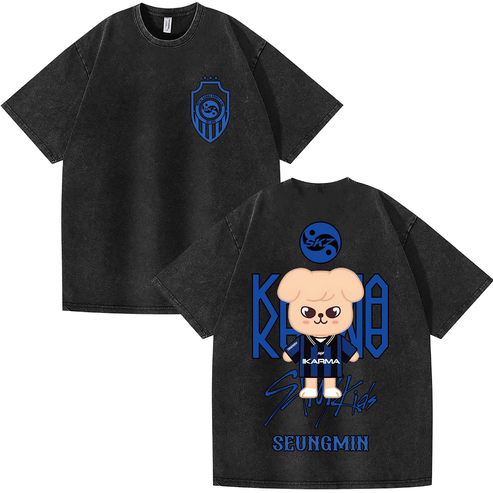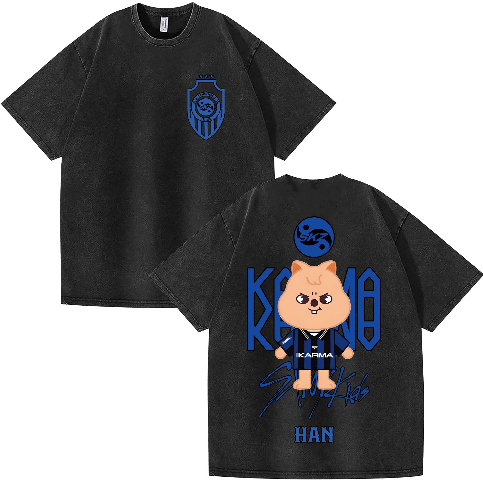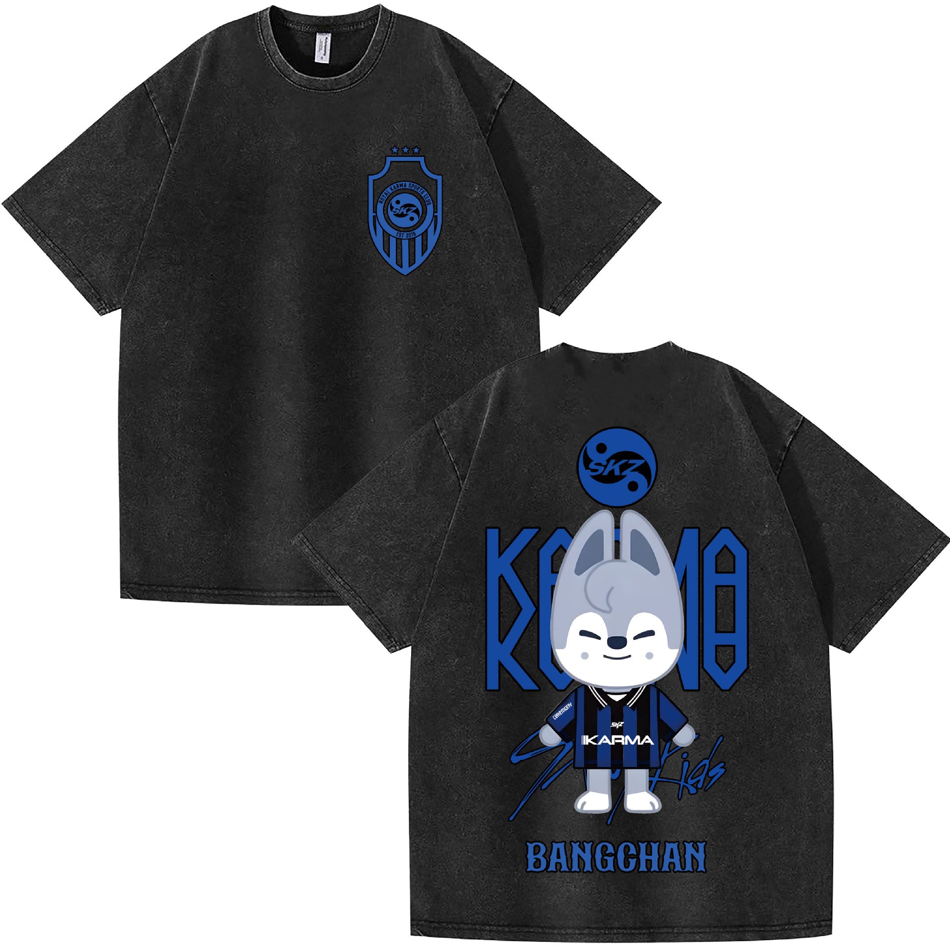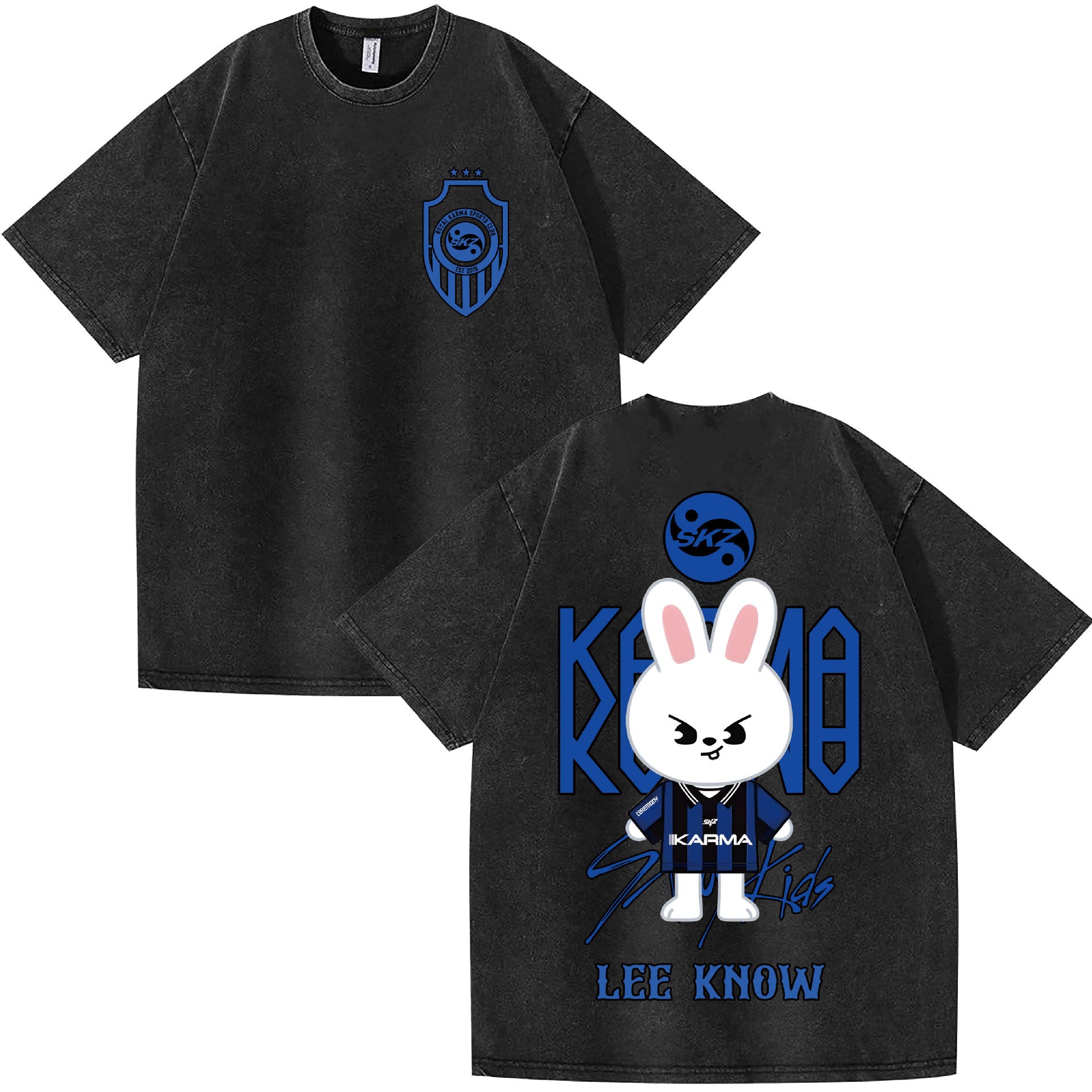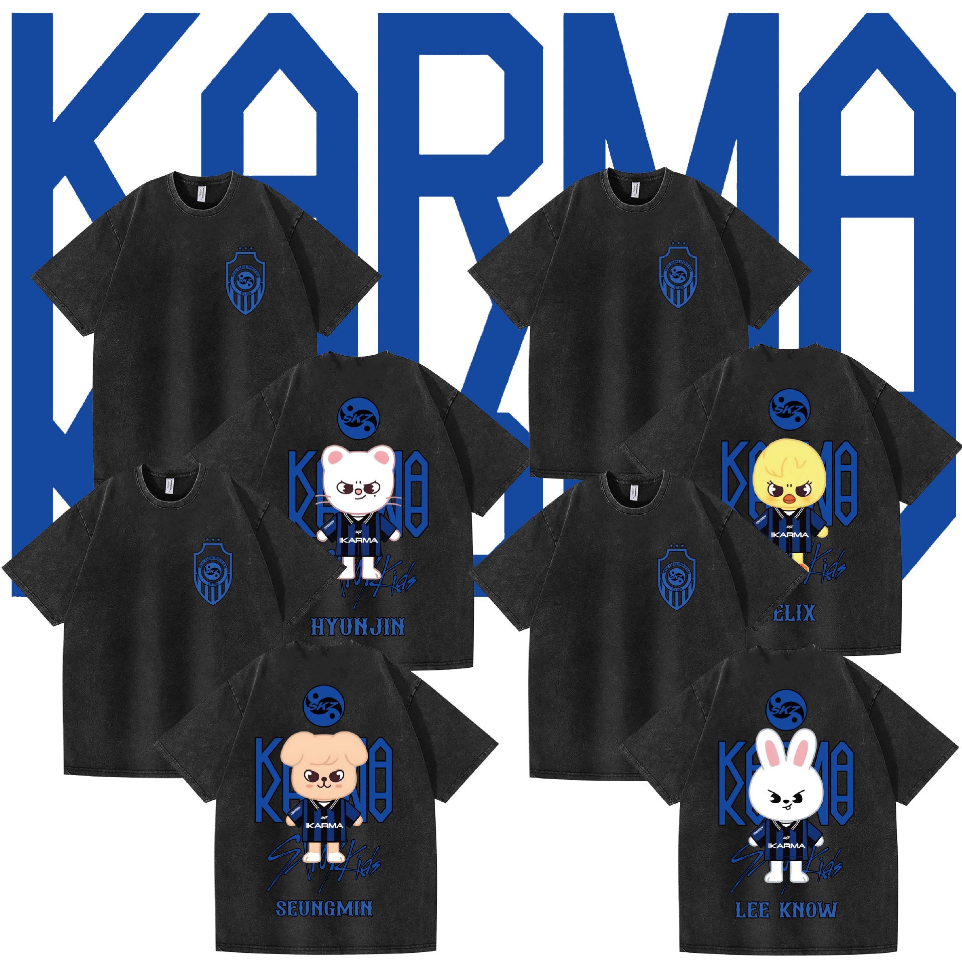 • Elevate your everyday style with the KPOP Vintage Karma Logo Washed T-shirt. Crafted for comfort and a relaxed fit, this tee features a faded vintage logo print that adds a subtle yet striking edge to your look. Perfect for fans and fashion enthusiasts alike, its washed finish brings a lived-in feel that pairs effortlessly with jeans or layers. This t-shirt combines casual appeal with expert design, making it a versatile staple in any wardrobe.